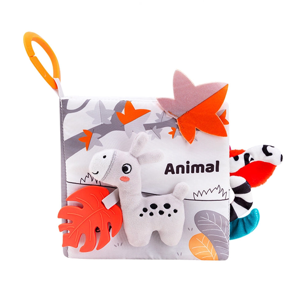 JOYBABY 寶寶布書 立體尾巴觸覺認知學習書 動物英文黑白啟蒙認知書 學習書