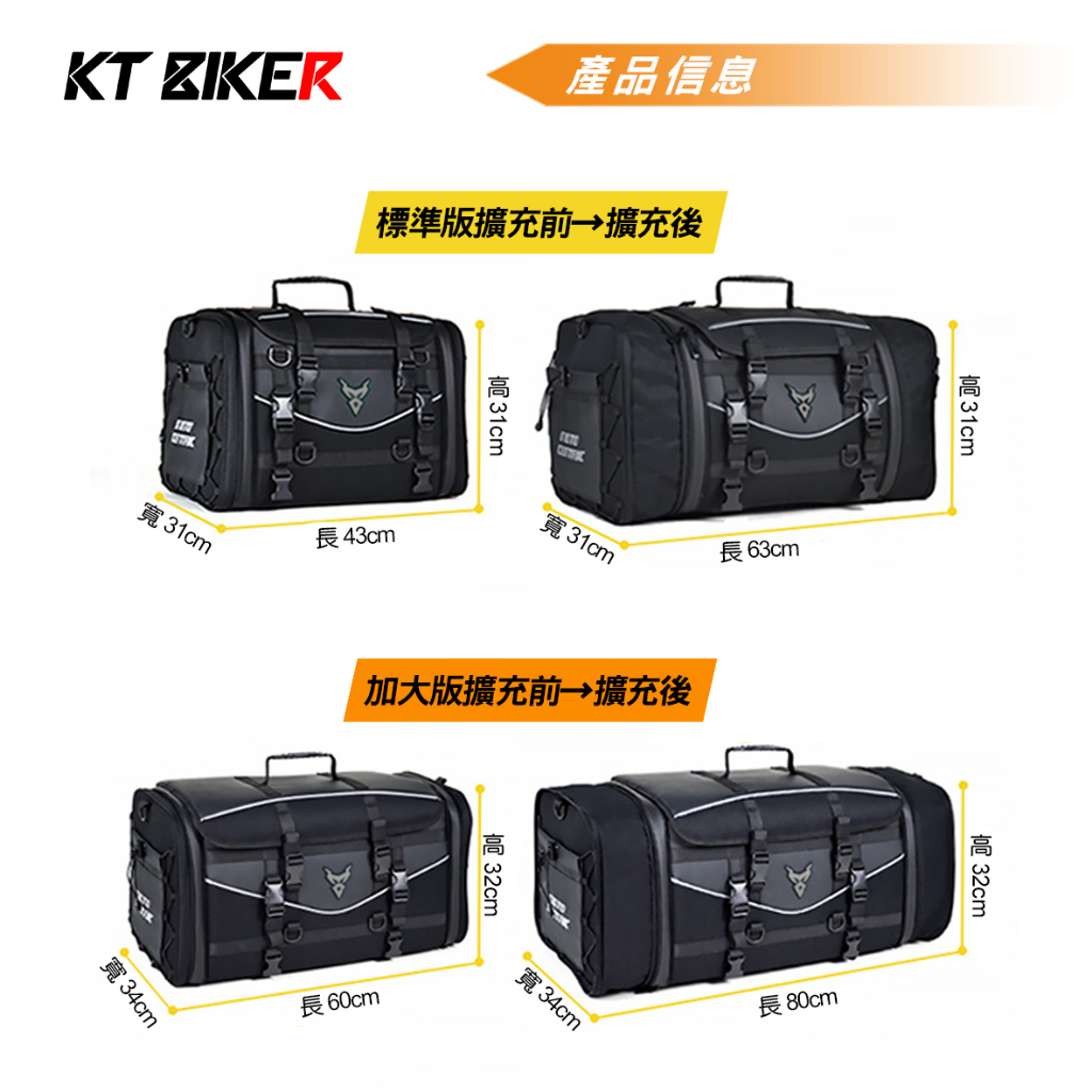 【KT BIKER】大容量後座包 (送雨罩) 加大版 重機 機車 環島 車尾包 防水包 旅行箱 旅行包 〔MCJ021〕標準版|加大版Boxes & CasesKT BIKER 專注車品
