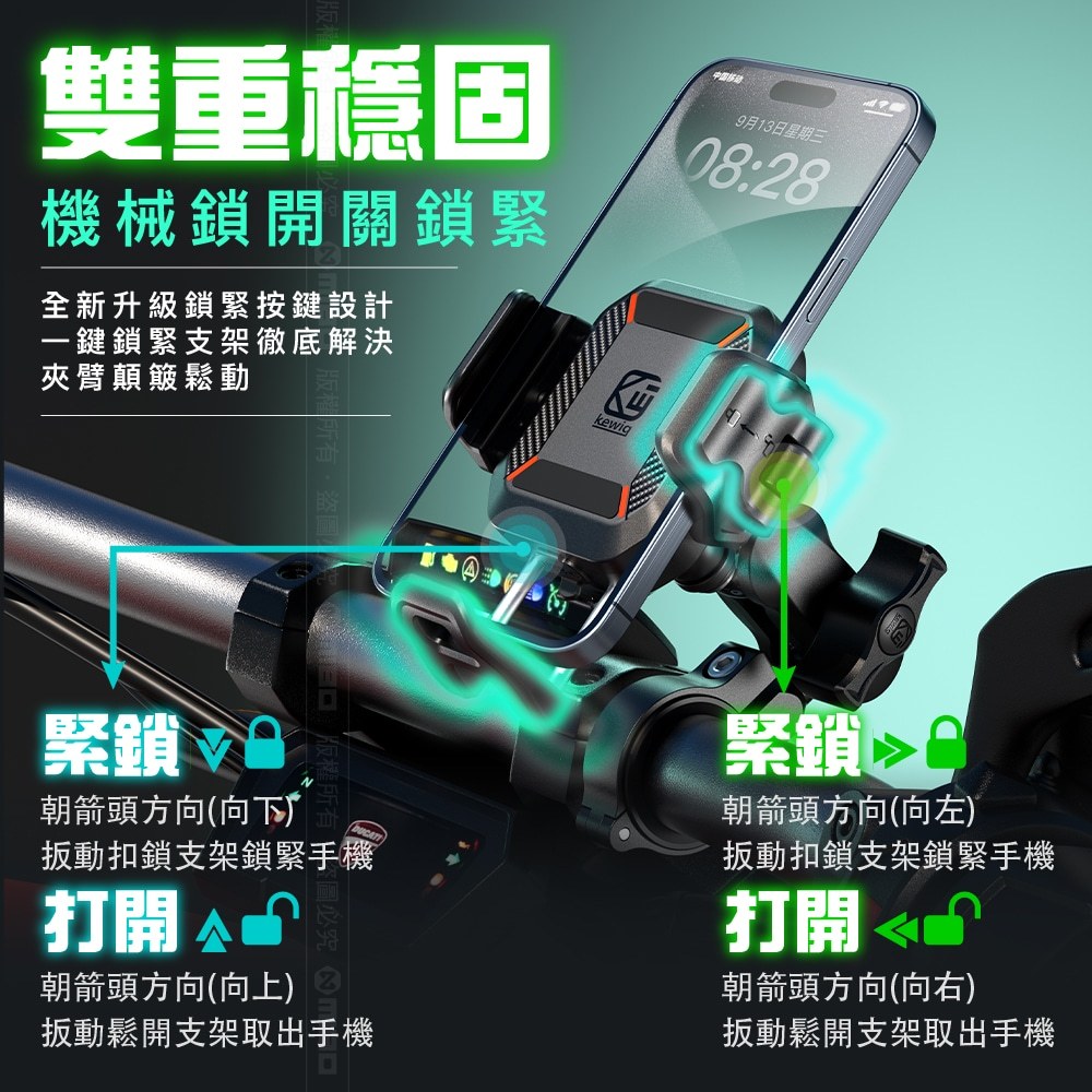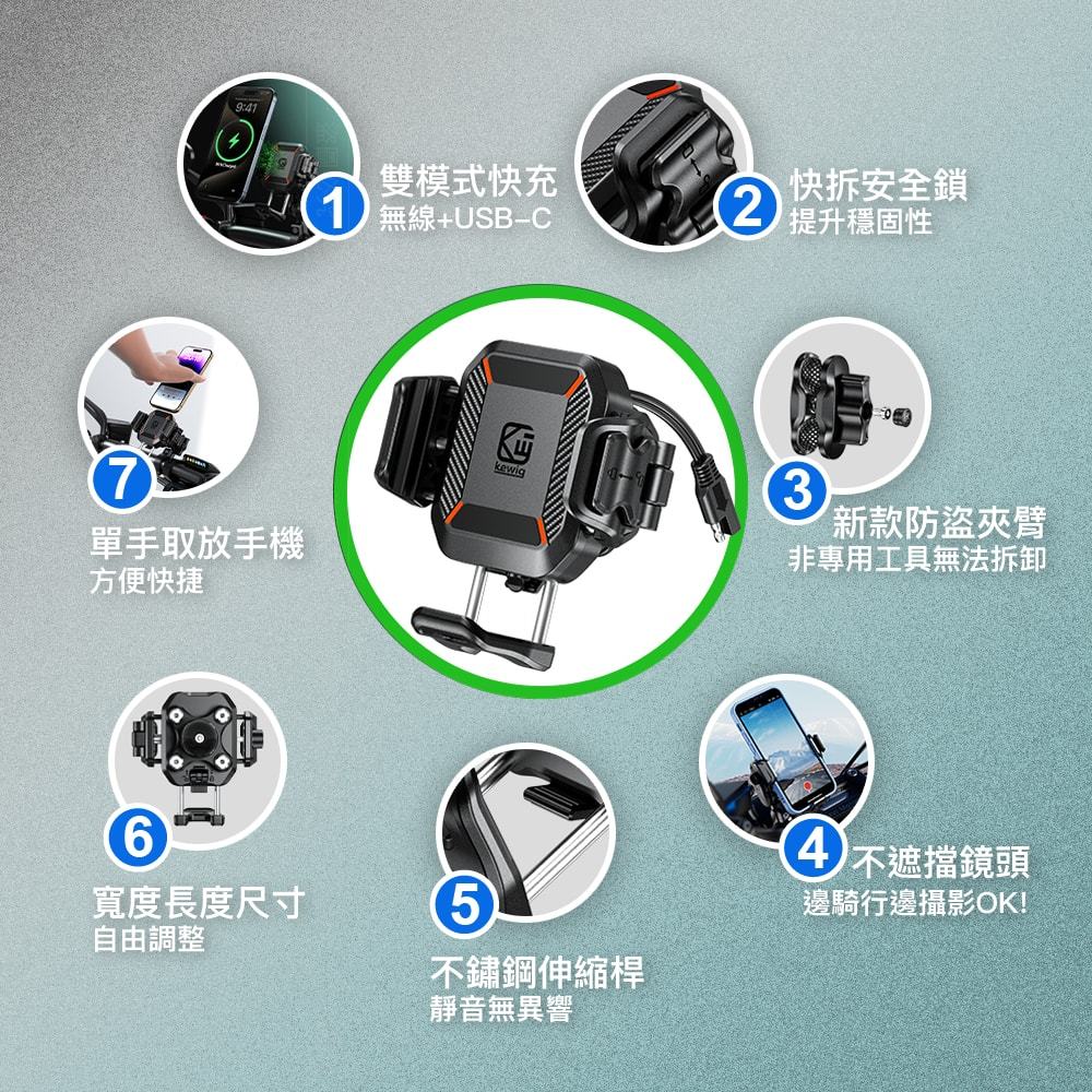 KEWIG 凱威格 M33A 機車手機架 無線/快充 雙充電 減震 增高 防盜 BSMI NCC認證 原廠公司貨M33A-C1 標準車把+增高版|M33A-C2 後視鏡座增高版|M33A-C3 後視鏡圓桿增高版|M33A-C5 U型車把增高版|M33A-C8 大力夾增高版Phone HoldersMICHELIN 米其林生活精品官方旗艦館