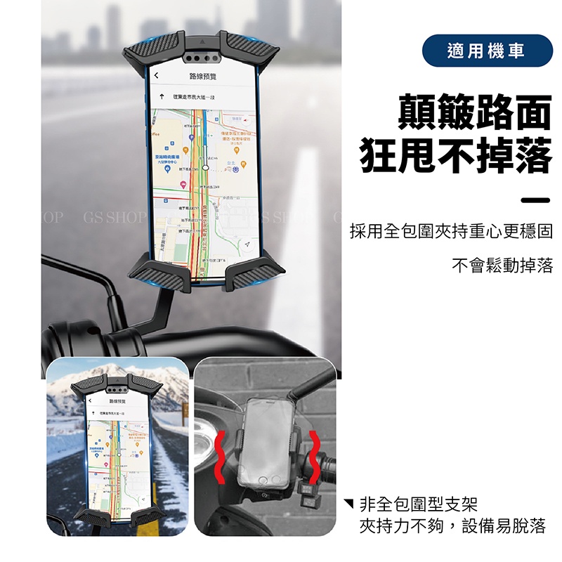 手機支架 機車 電動車 腳踏車 自行車 超穩固 夾式 可旋轉 外送 外賣 通勤 必備 車用支架 後照鏡支架 導航支架機車-後照鏡款,黑色|腳踏車-把手款,黑色Phone HoldersGS 3C 手機平板配件選品店