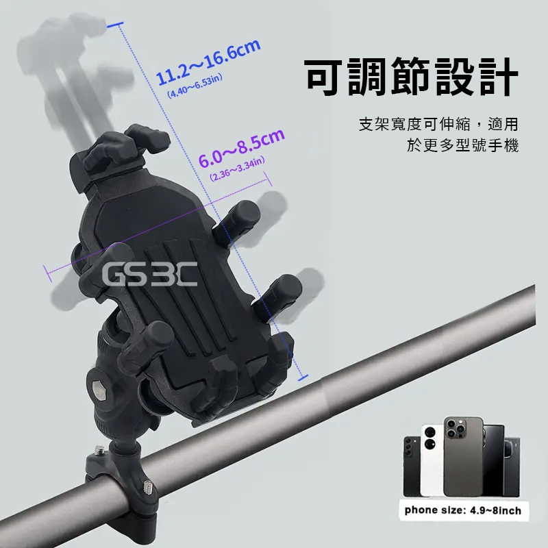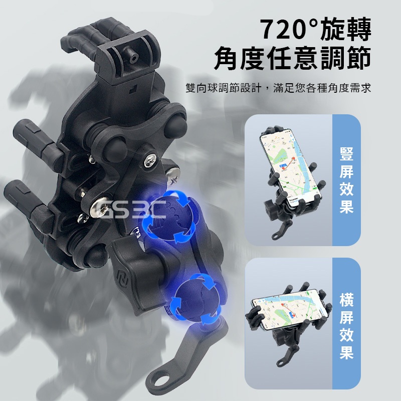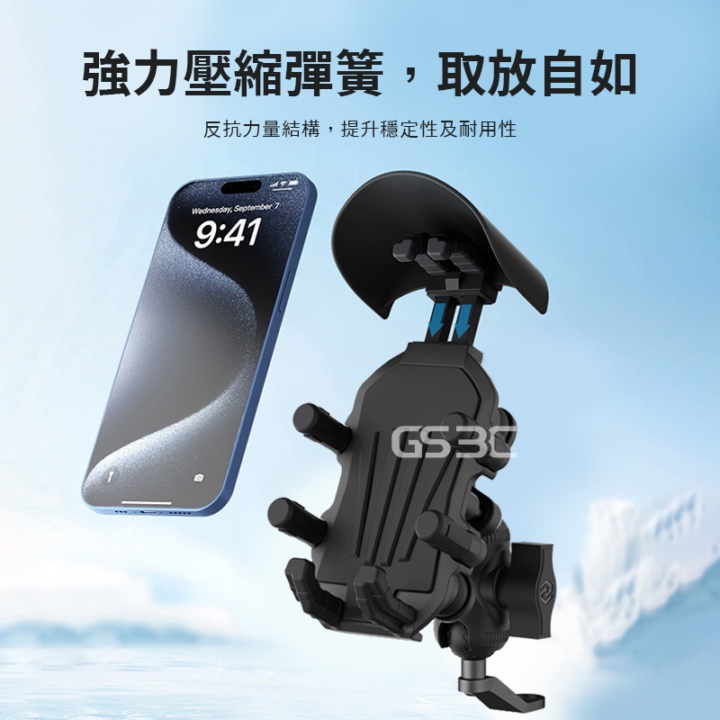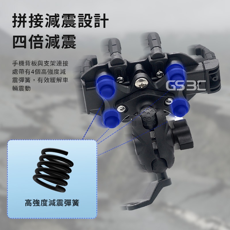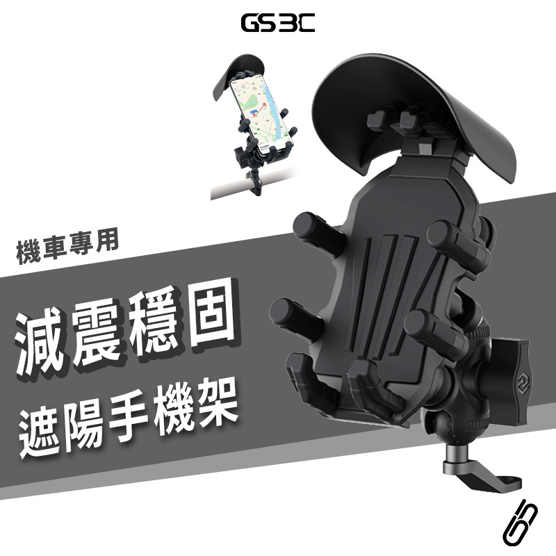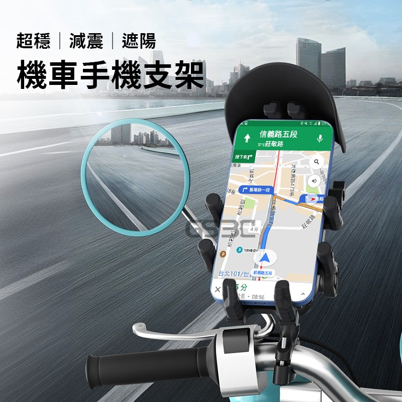 四角減震 超穩 八爪固定 防曬 遮陽帽 避雨 機車 專用 手機支架 後照鏡 手機架 機車支架 八角鎖定 緩衝 外送必備黑色Phone HoldersGS 3C 手機平板配件選品店