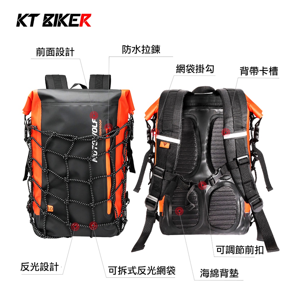 【KT BIKER】機車 防水背包 MOTOWOLF 摩多狼 騎士背包 防水袋 多功能背包 防水包〔MWF007〕橘色|軍綠|黑色KT BIKER 專注車品