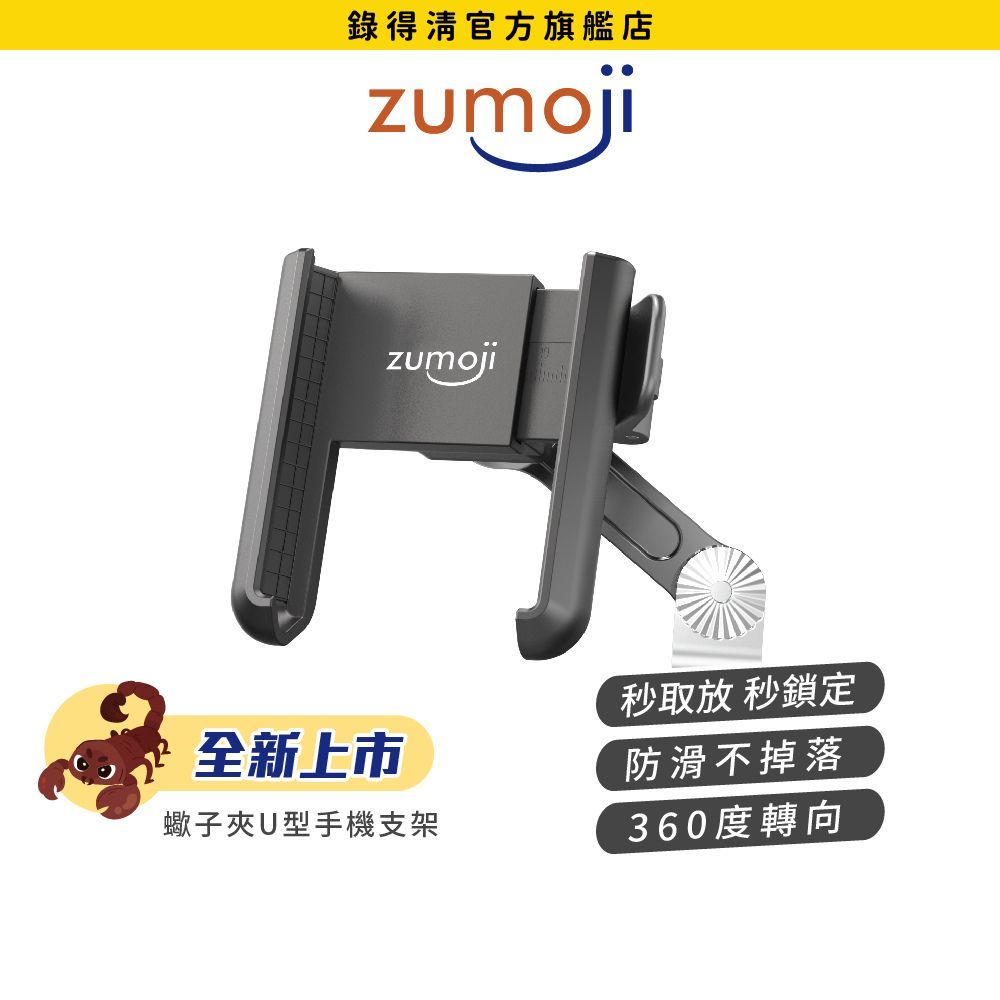 【ZUMOJI】蠍子夾 機車手機支架 U型 矽膠防滑設計 360度轉向 隨扣即用 安裝穩固 手機支架後視鏡款|車把款Phone HoldersLOOKING 行車記錄器 官方直營