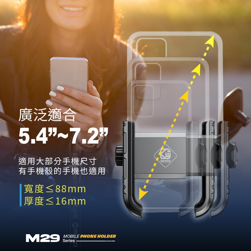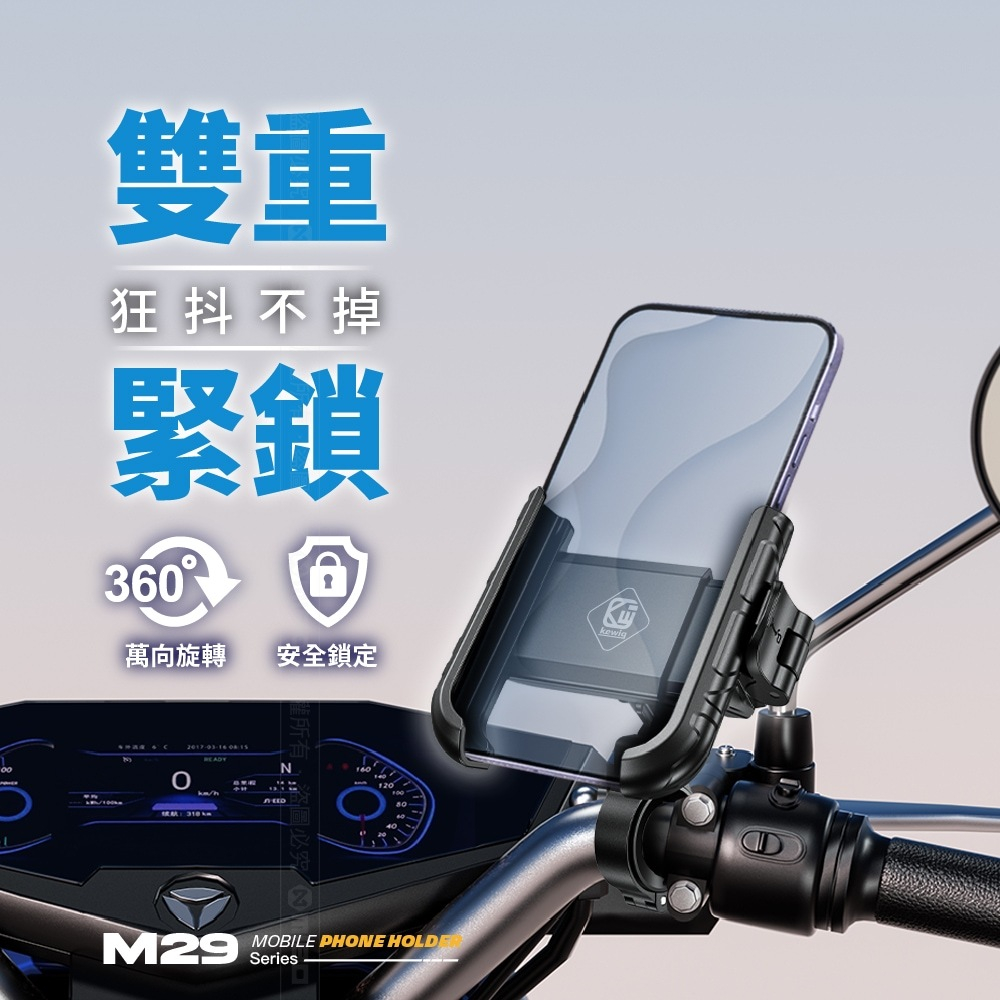 KEWIG 凱威格 M29-C1 摩托車 機車手機架 快扣夾式 不擋鏡頭 導航車架 工廠直營 總代理公司貨 新品上市H3-BK 黑色鋁合金後視鏡座雙螺孔|H3-RE 紅色鋁合金後視鏡座雙螺孔|H3-BL 藍色鋁合金後視鏡座雙螺孔|M29-C1 標準車把版|H1 塑料後視鏡座Phone HoldersMICHELIN 米其林生活精品官方旗艦館