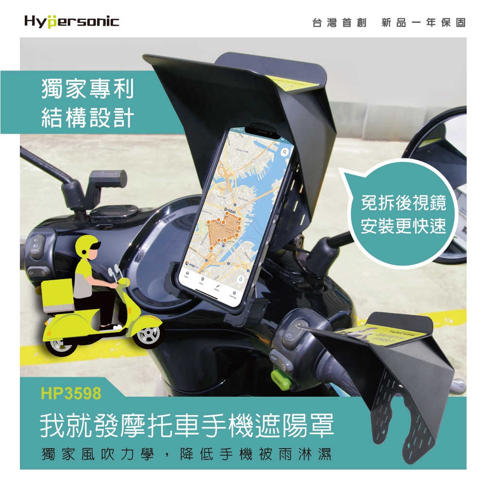 Hypersonic 開學手機防曬買 HP3598台灣製現貨 遮陽神器 黑隼 機車手機遮陽罩免拆後視鏡 騎士推薦小鷹爪三/四代系列|其他已確認系列|黑隼手機架|十瑪多功能、章魚、獵鷹(以上減震亦可使用|五匹經典、章魚、甲殼(以上減震亦可使用)|HPA515/HPA544手機架加購專用|X型鷹爪手機架系列|其他八爪型系列Phone HoldersHypersonic 高仕汽車精品百貨(品牌旗艦店)