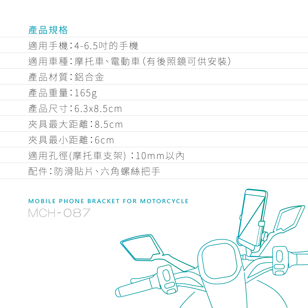 〖KINYO〗 U型機車手機架 (MCH) 機車支架 摩托車手機架 手機支架 360度旋轉 U型結構 外送 導航MCH087 手機架Phone HoldersKINYO官方旗艦店_家電館