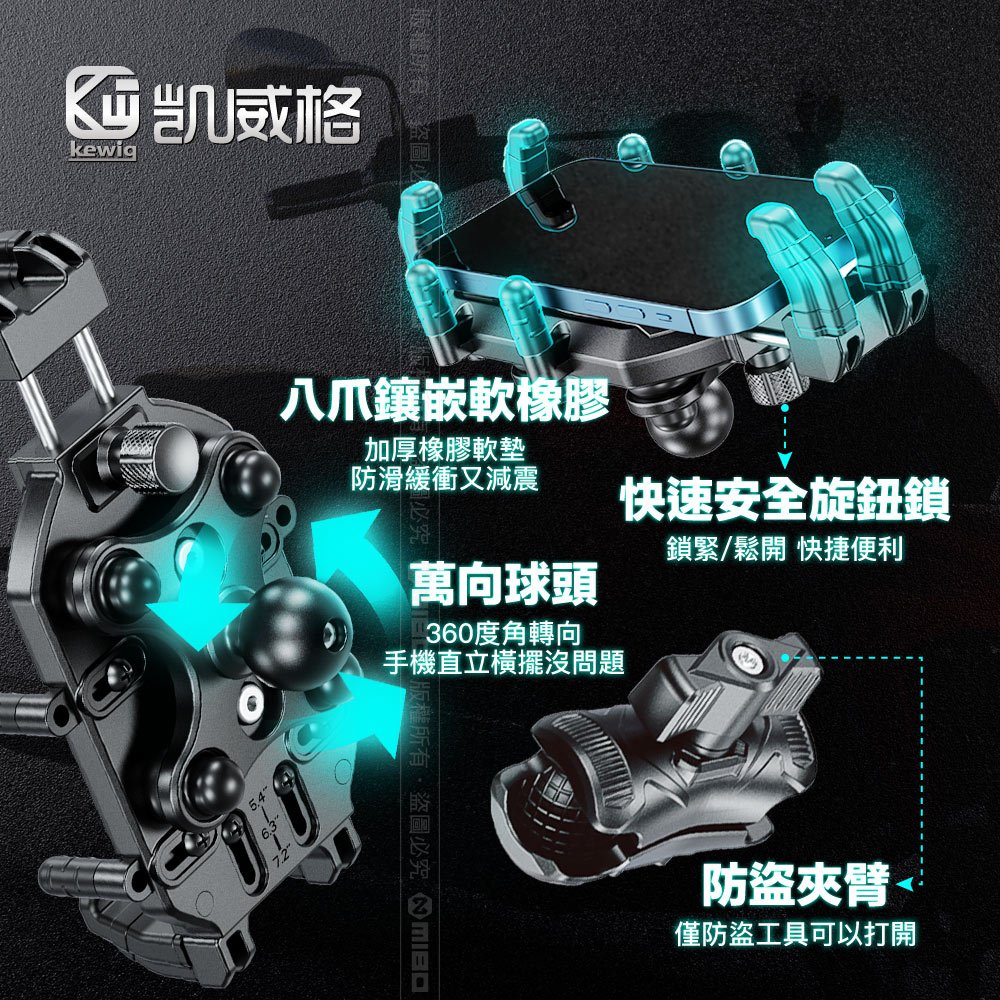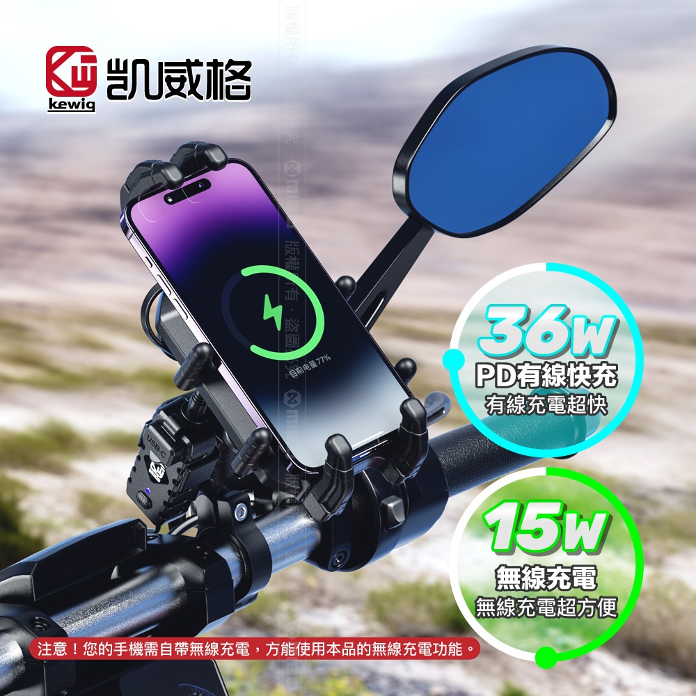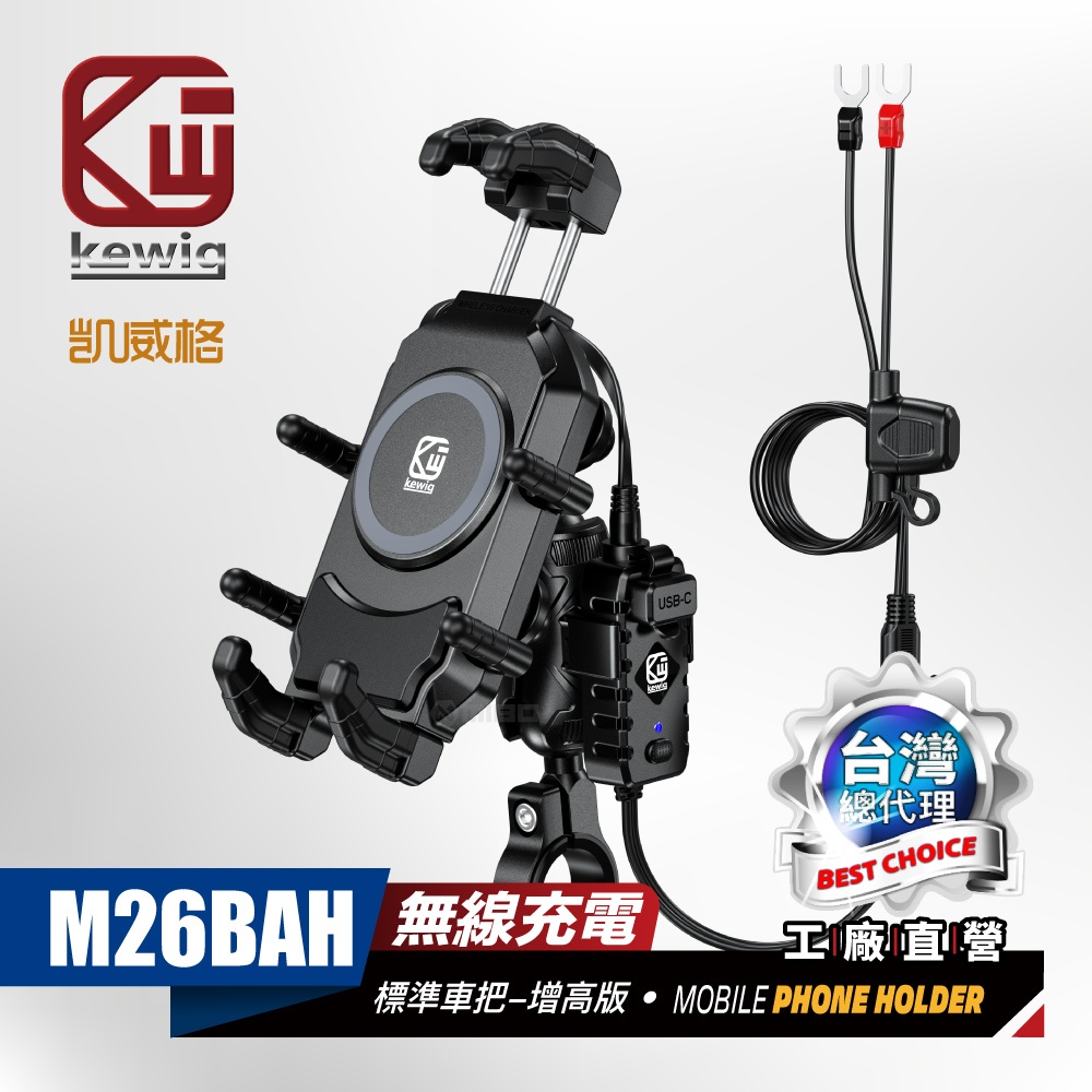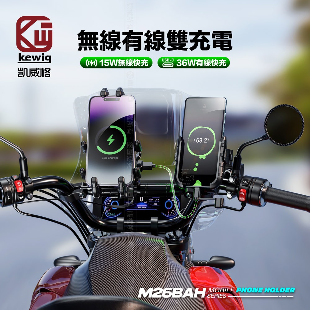 KEWIG 凱威格 M26BAH 機車手機架 無線/快充 雙充電 減震 增高 防盜 BSMI NCC認證 原廠公司貨M26升級用充電模組只有模組沒有手機架|M26BAH-C1 標準車把+增高版 黑|M26BAH-C2 後視鏡座+增高版 黑|M26BAH-C2 後視鏡座增高版 白|M26BAH-C8 大力夾增高版Phone HoldersMICHELIN 米其林生活精品官方旗艦館