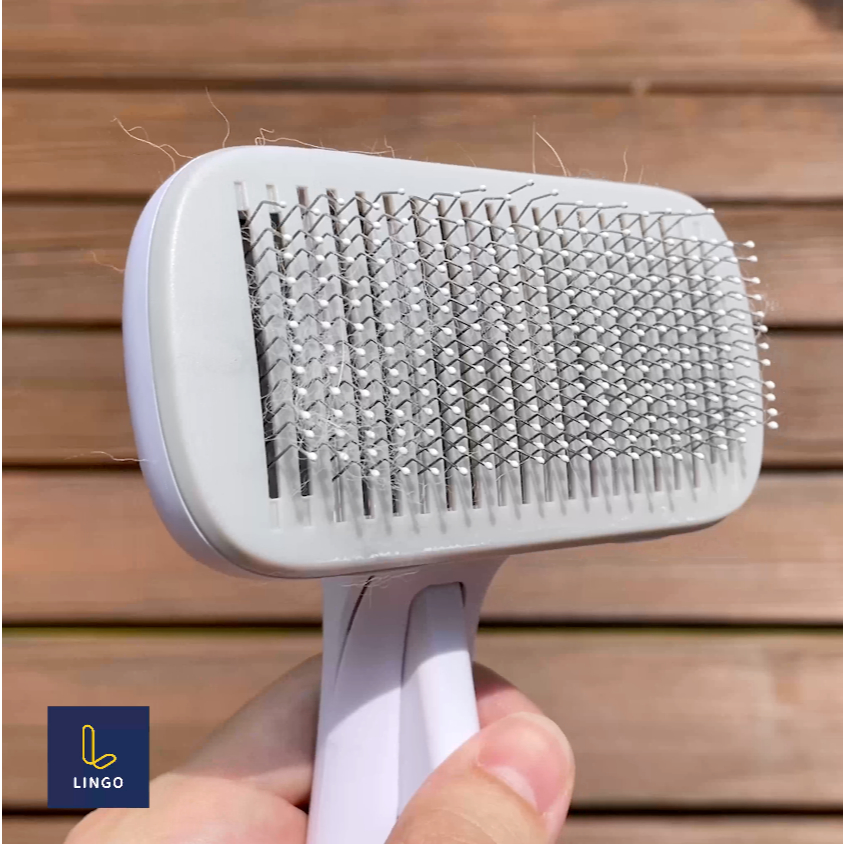 LINGO|不鏽鋼寵物刷毛梳 (一鍵脫毛/寵物梳子/貓梳子/狗梳子/梳毛刷/脫毛梳/去除廢毛//梳毛按摩/細針(去除廢毛)福利品|粗針(梳順按摩)Hair CareLINGO 寵物居家