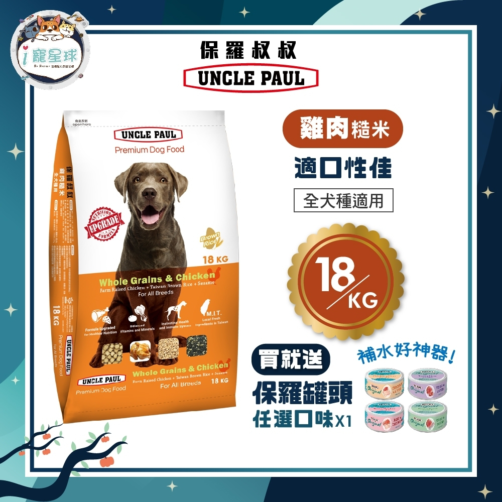 ※下單即送罐頭※【保羅叔叔高級】優質狗糧 狗飼料 – 雞肉糙米18KG-全齡犬 全犬種 高蛋白 低脂 台灣製 狗園 浪浪保羅高級-成犬雞肉糙米18KGDog Foodi寵星球