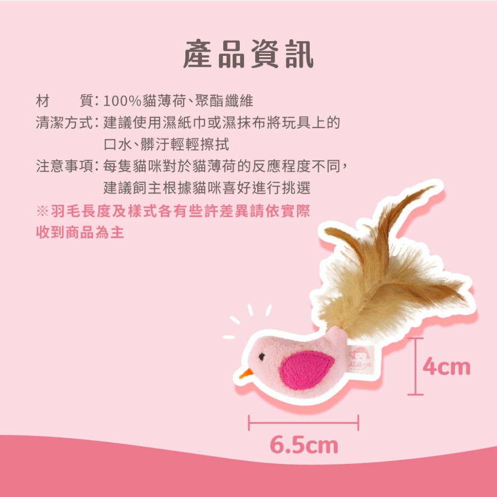 超凝小姐|100%貓薄荷玩具 貓咪紓壓 寵物玩偶 逗貓玩具粉色小鳥ToysLady N 超凝小姐品牌館