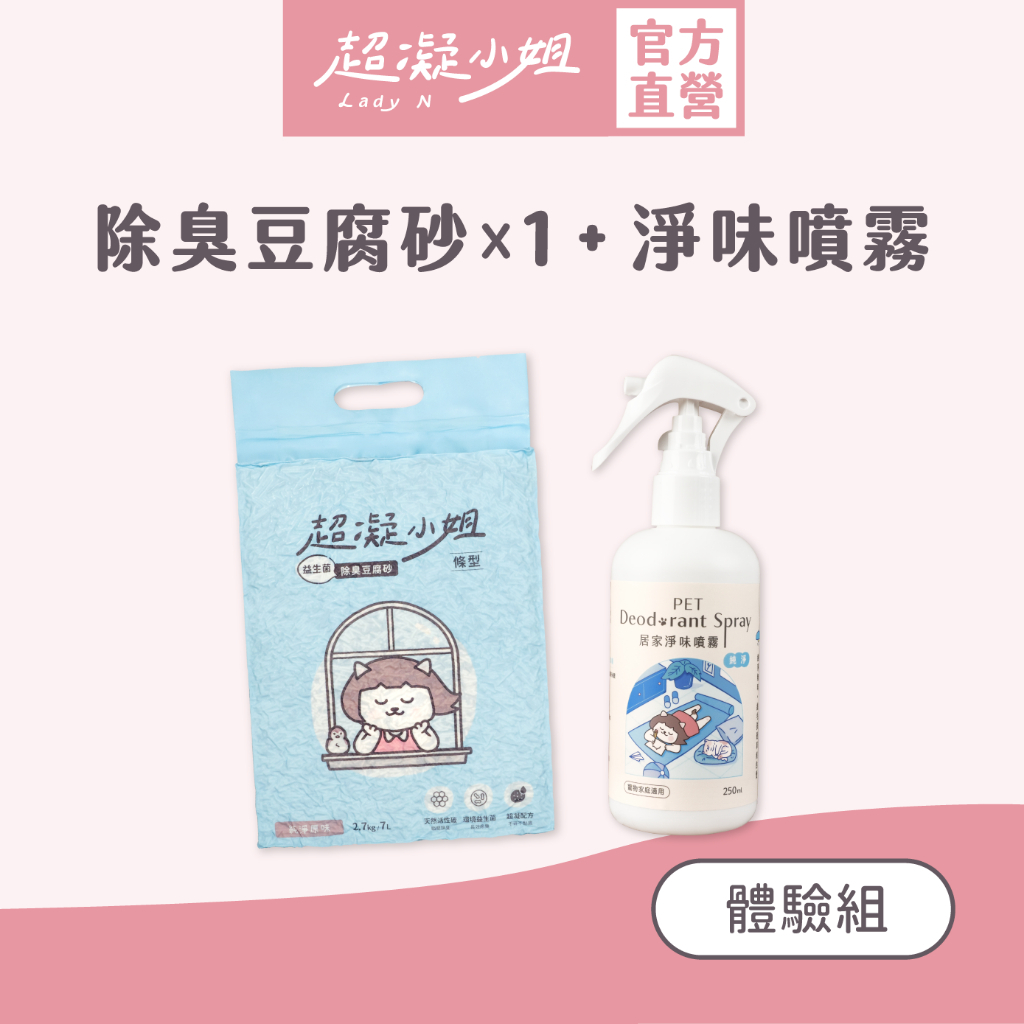超凝小姐|【體驗組】益菌除臭豆腐砂x香氛淨味噴霧 多組可選 貓砂 豆腐砂 可沖馬桶 快速凝結 低粉塵 香氛除臭森林豆腐砂x純淨噴霧(無香)|森林豆腐砂x搖籃曲噴霧(木質調)|原味豆腐砂x純淨噴霧(無香)|原味豆腐砂x搖籃曲噴霧(木質調)|原味豆腐砂x日光浴噴霧(花香調)|珍奶豆腐砂x純淨噴霧(無香)|珍奶豆腐砂x搖籃曲噴霧(木質調)Cat Litter & BoxesLady N 超凝小姐品牌館