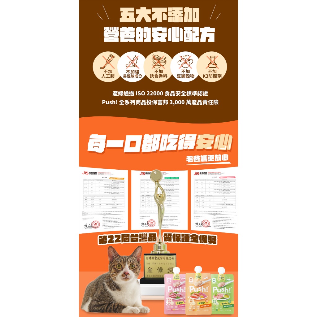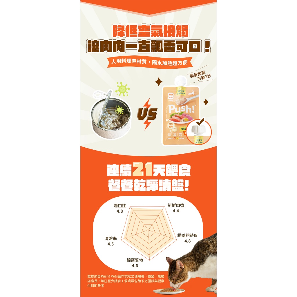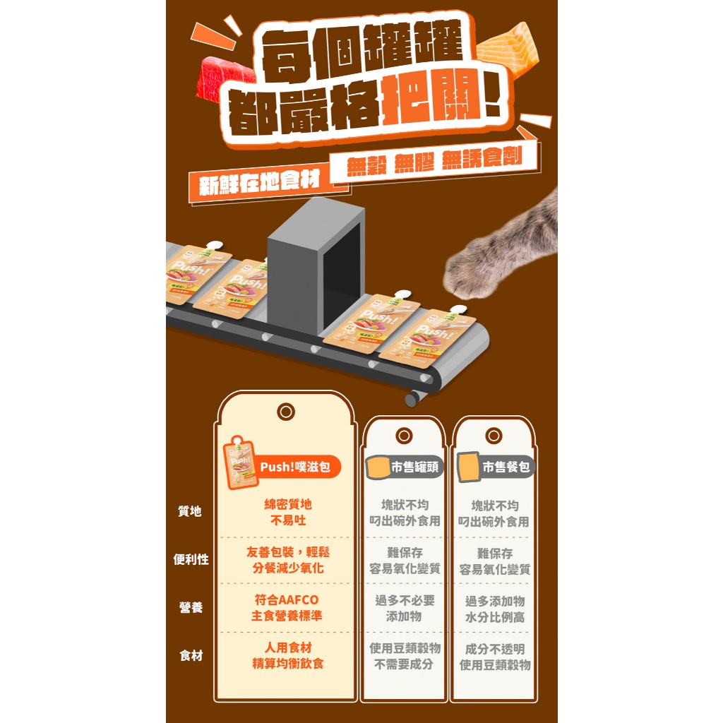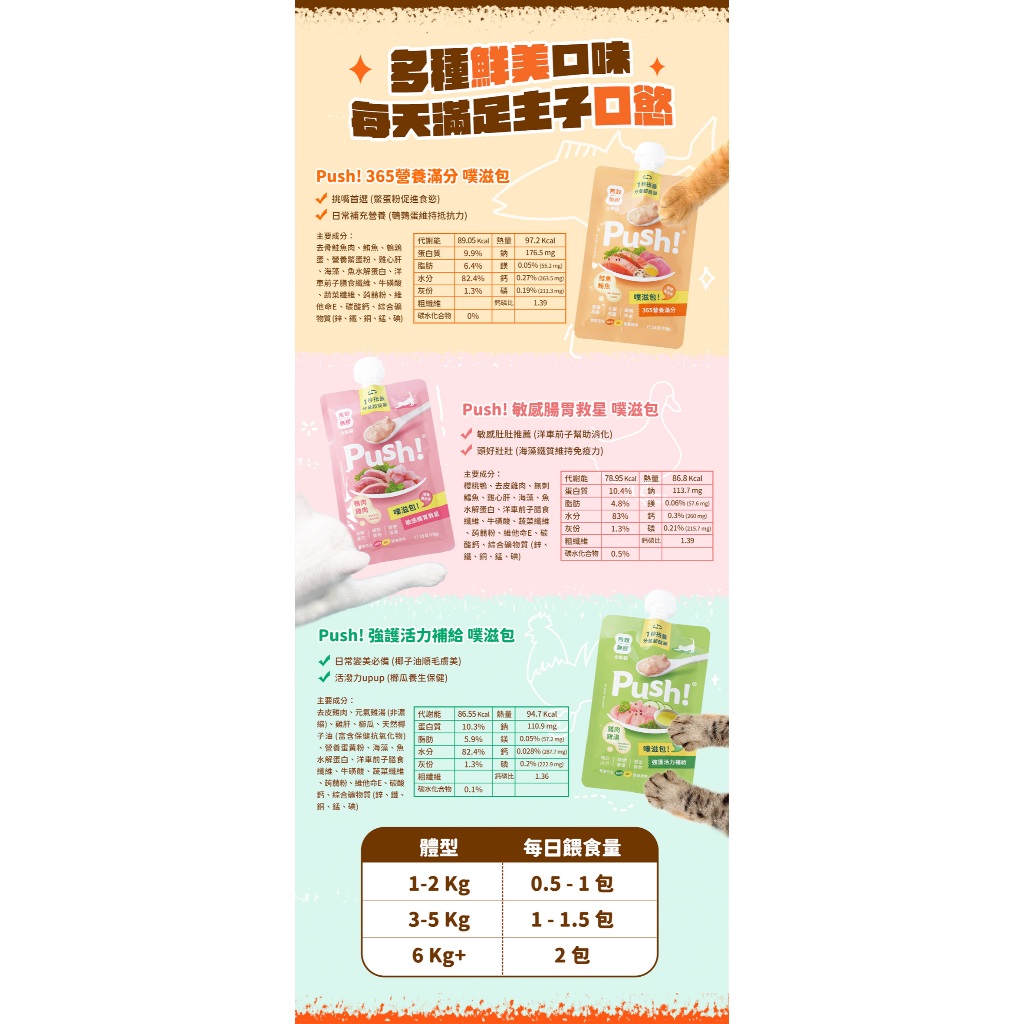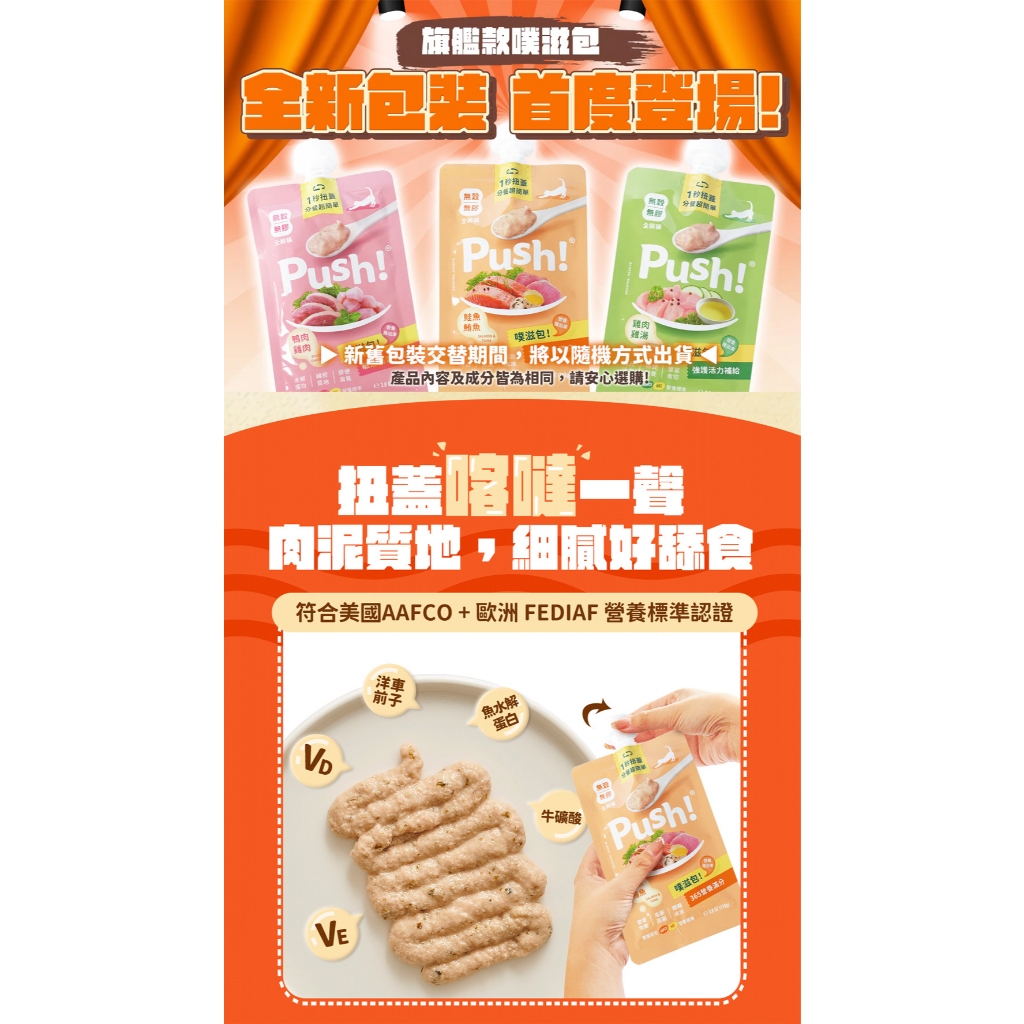 Push! 旗艦噗滋包 多種口味 貓用 肉泥 主食肉泥 鮮食餐包 餵食湯匙 鴨肉 雞肉 鮭魚 鮪魚敏感腸胃救星X鴨肉 110g|65營養滿分X鮭魚鮪魚 110g|強護活力補給X雞肉櫛瓜 110g|互動餵食湯匙 白Cat Treatsmao & kou 官方旗艦店