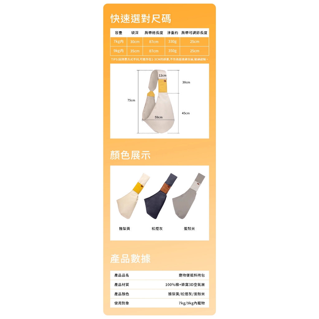 HiDREAM 寵物便攜斜挎包 全棉款 貓用 犬用 貓狗通用 寵物外出包 寵物包包 貓咪外出包 斜背款雅梨黃 7KG|莓醬粉 7KG|松煙灰 7KG|蛋殼米 7KG|雅梨黃 9KGTravel Essentialsmao & kou 官方旗艦店