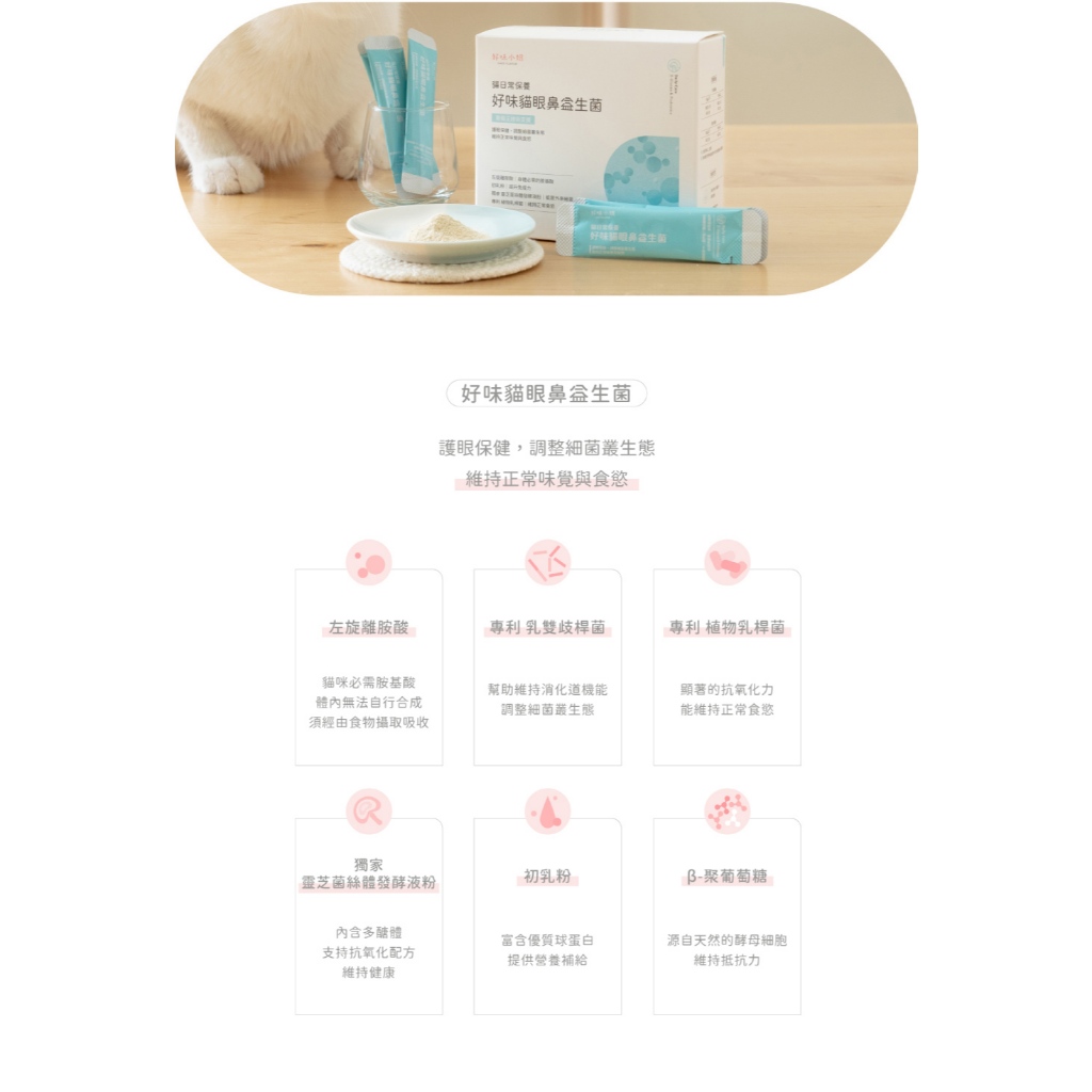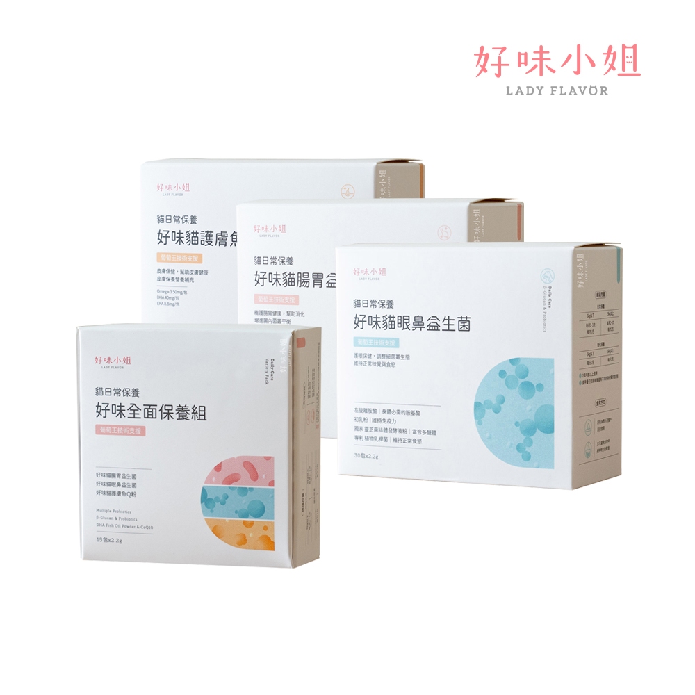 好味小姐 貓日常保養 全面保養組 貓用 寵物保健 腸胃益生菌 護膚魚Q粉 眼鼻益生菌全面保養組 – 15入/盒|腸胃益生菌 – 30入/盒|護膚魚Q粉 – 30入/盒|眼鼻益生菌 – 30入/盒Vitamins & Supplementsmao & kou 官方旗艦店