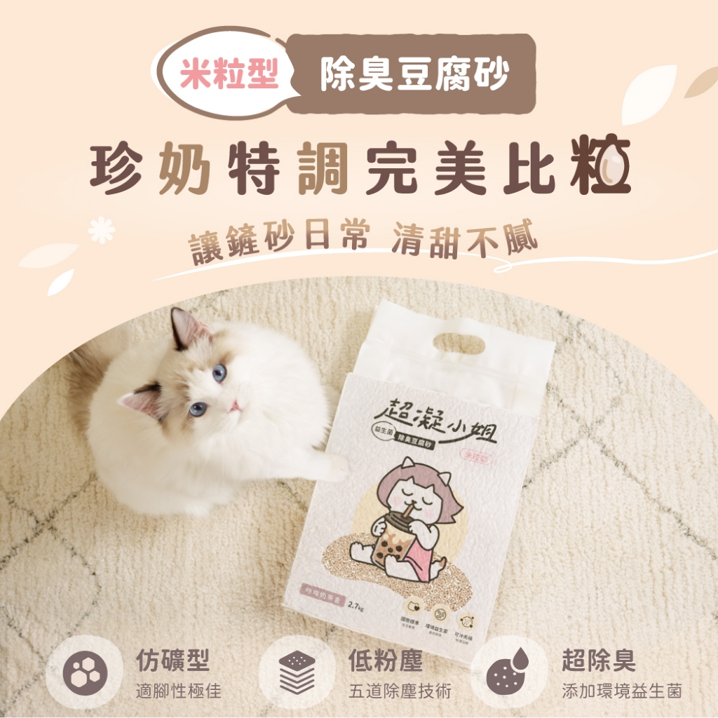 超凝小姐|【滿額贈】益生菌除臭豆腐砂(7L x 3入)【米粒型珍珠奶茶香】-活動贈品 請勿下單米粒型珍奶香3包Cat Litter & BoxesLady N 超凝小姐品牌館