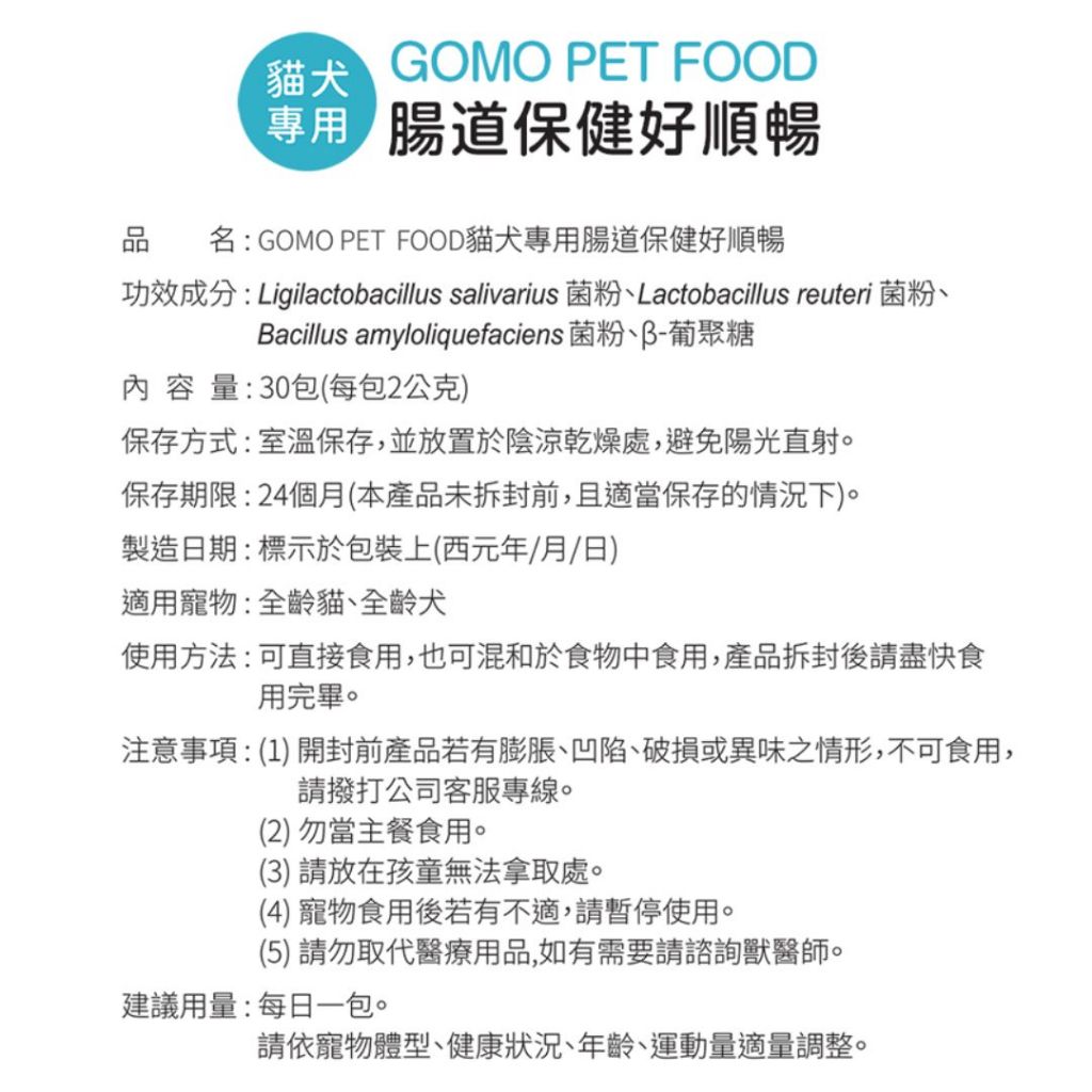 【GOMO PET FOOD】 即期買一送一 GOMO寵物營養品 犬貓用腸道保健好順暢 30包入 犬貓腸道保健【GOMO PET FOOD】 即期買一送一 GOMO寵物營養品 犬貓用腸道保健好順暢 30包入 犬貓腸道保健Vitamins & SupplementsGOMO PET FOOD品牌旗艦店