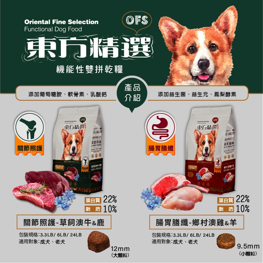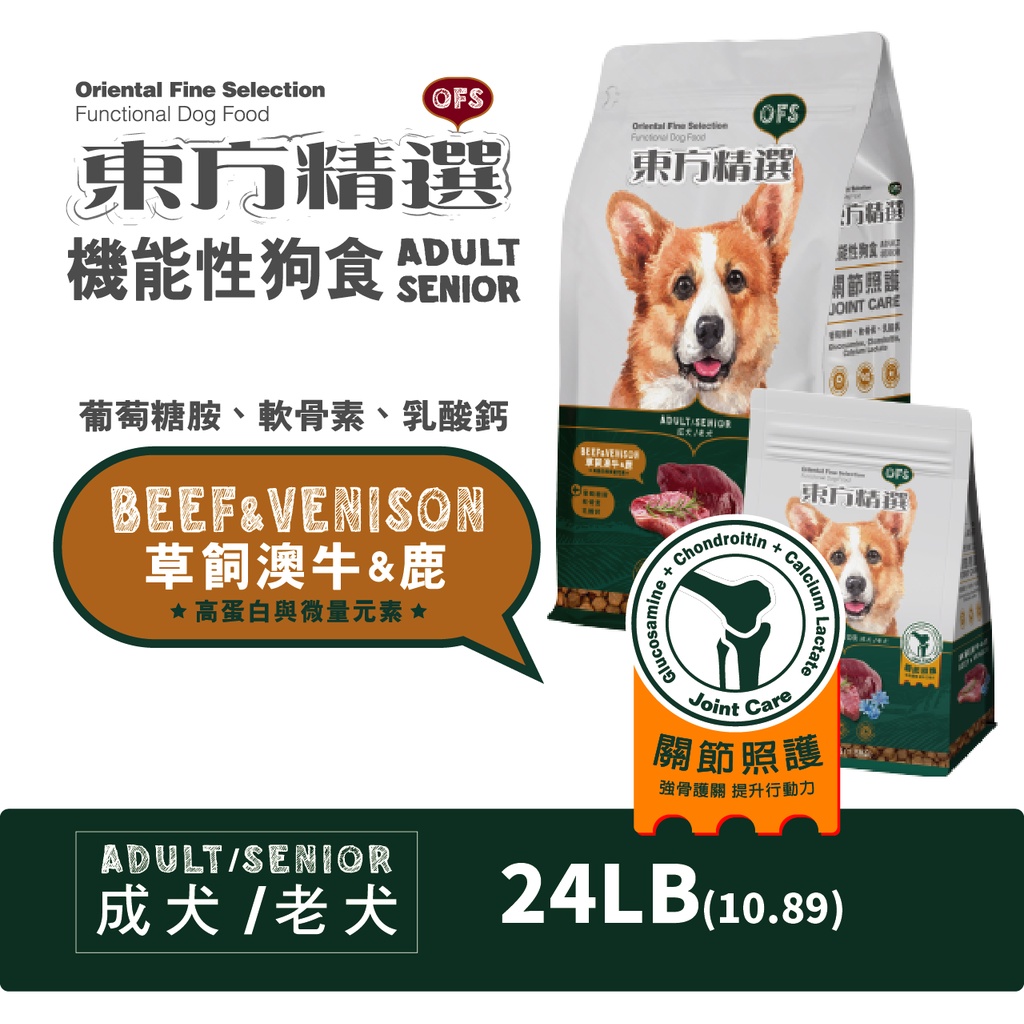 東方精選-機能性狗食 關節照護(牛+鹿) 成犬 老犬 24LB(10.89kg) 挑嘴狗 狗飼料 犬糧 機能糧關節照護(牛+鹿)|腸胃膳纖(雞+羊)Dog Foodi寵星球