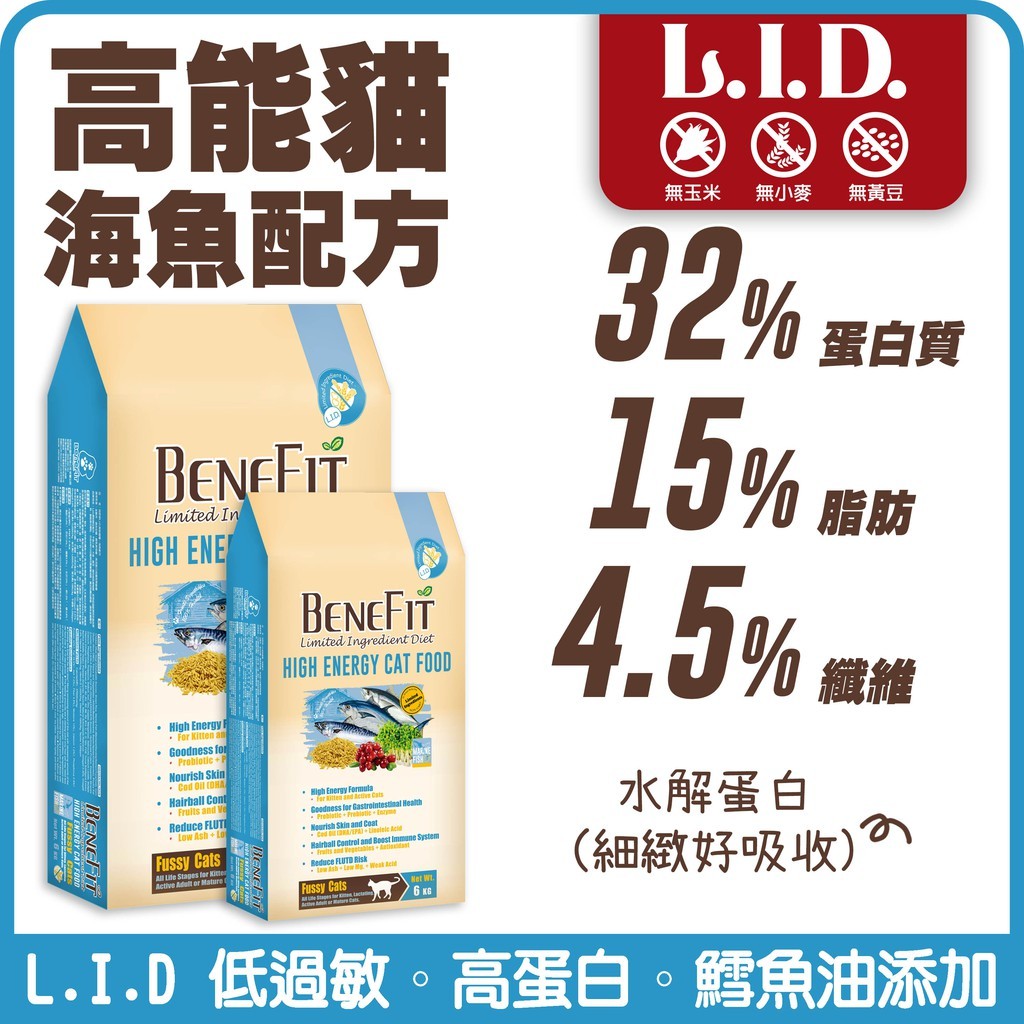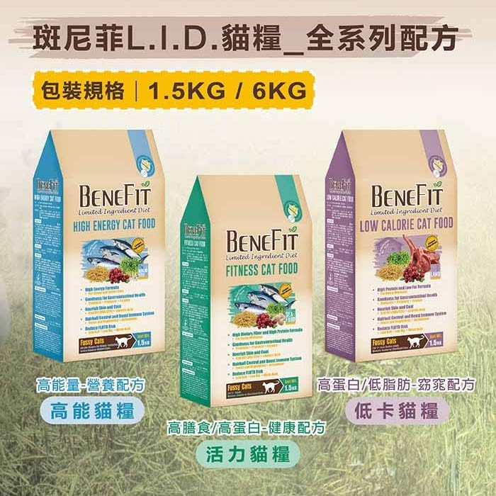 【買大送小】斑尼菲Benefit L.I.D.低敏貓飼料 高能貓 海魚配方6kg -幼貓 成貓 全齡貓 室內貓高能貓(海魚配方),6kg贈1.5kg|活力貓(海鮮配方),6kg贈1.5kg|低卡貓(羊肉配方),6kg贈1.5kgCat Foodi寵星球