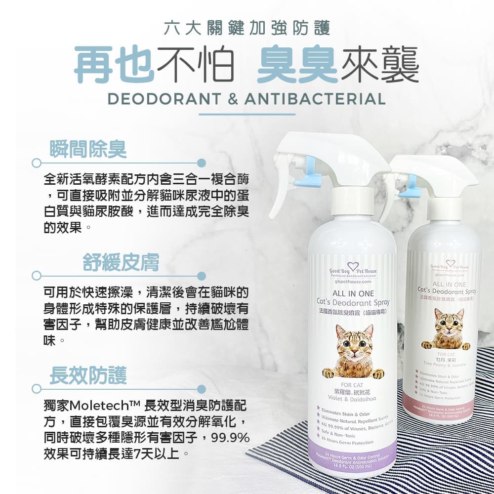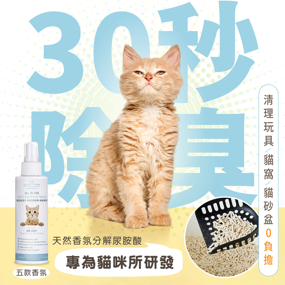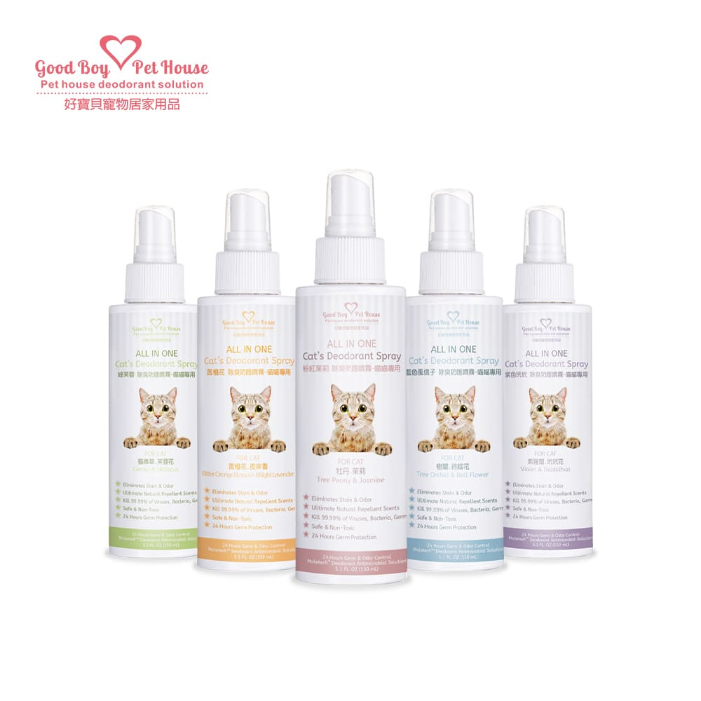 【GBPH好寶貝】All IN ONE 法國香氛貓咪除臭防護噴霧150ml (五款香味可選)藍色風信子|粉紅茉莉|紫色玳玳|綠芙蓉|苦橙花|隨機出貨OthersGBPH 好寶貝寵物居家用品