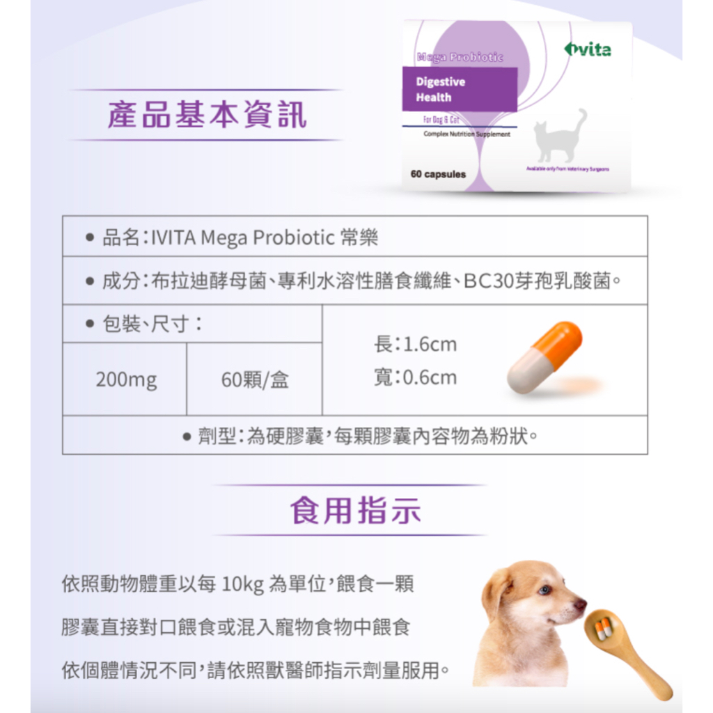 [免運,24HR出貨] IVITA Mega Probiotic 常樂 寵物健康腸道好幫手-60粒 動物醫院專賣[免運,24HR出貨] IVITA Mega Probiotic 常樂 寵物健康腸道好幫手-60粒 動物醫院專賣Vitamins & SupplementsHappy pet shop商城