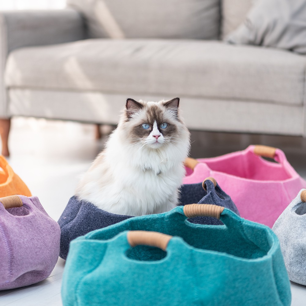 【LIFEAPP】貓籃子 貓窩 貓屋 寵物窩 寵物貓窩 四季寵物窩 羊毛氈寵物窩海軍藍|氣質灰|湖水綠|櫻花粉|薰衣草紫|加州橘Pet FurnitureLIFEAPP
