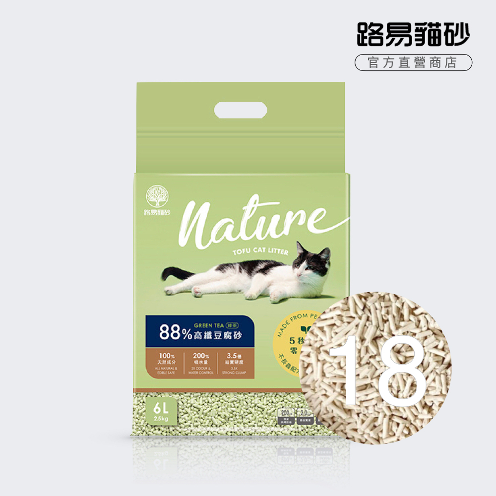 路易LOUIS 88%高纖豆腐砂18入(2.5kg/包) 首選天然豆腐砂「綠茶」(可沖馬桶)天然綠茶Cat Litter & BoxesLOUIS路易 官方旗艦店