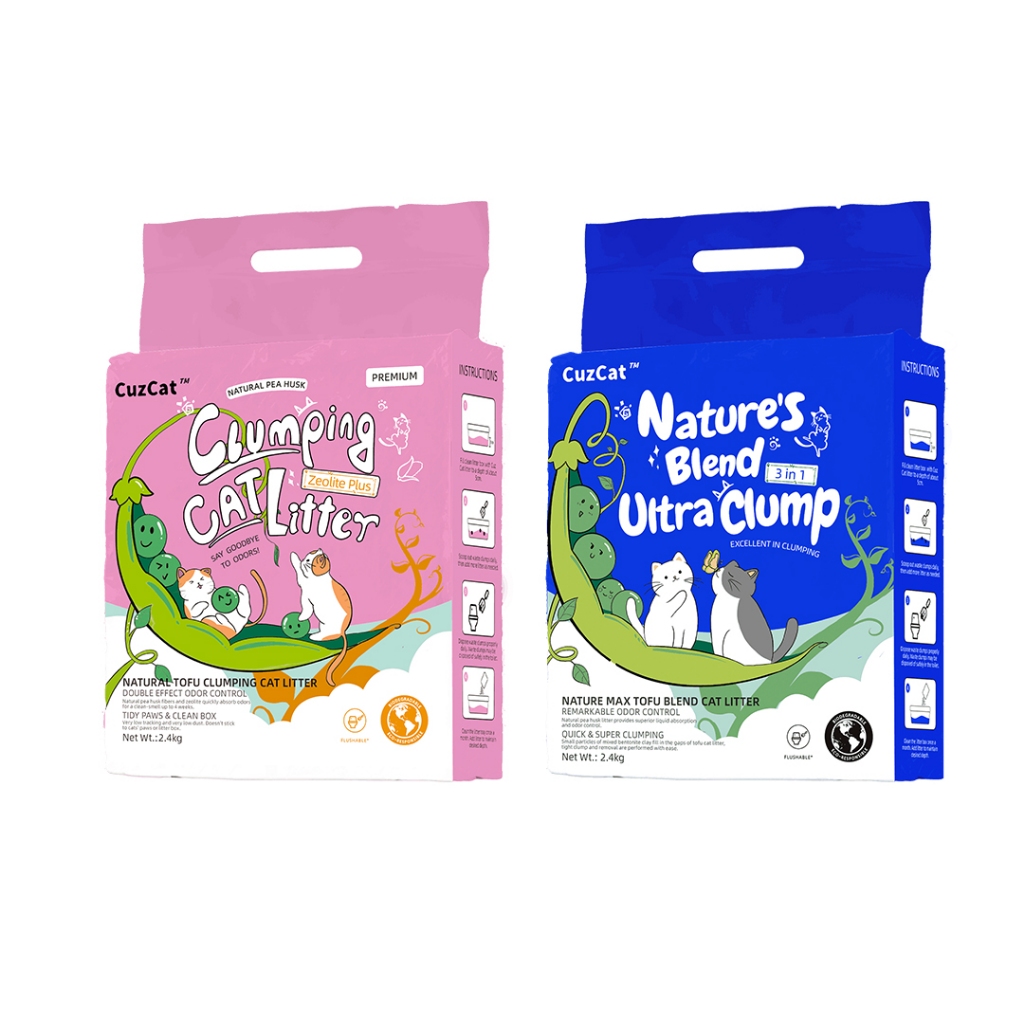 【CuzCat卡滋貓】貓砂 豆腐砂 2.4kg 天然豆腐貓砂 豆腐砂 豆腐 貓沙 礦砂 松木貓砂 木屑砂 松木砂 混合砂粉 (沸石除臭抗敏配方)|藍(三合一極速凝結配方)Cat Litter & BoxesLazy Cat 悠懶貓