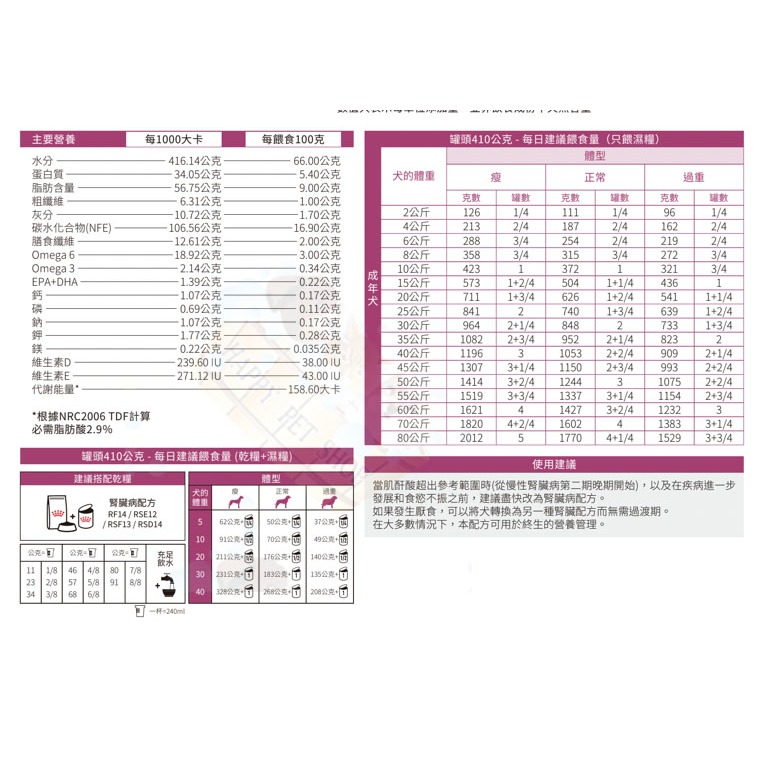 皇家 RF14C犬 腎臟病配方罐頭200g/410g ~RSD14/RF14/RSE12/RSF13/kd可參考