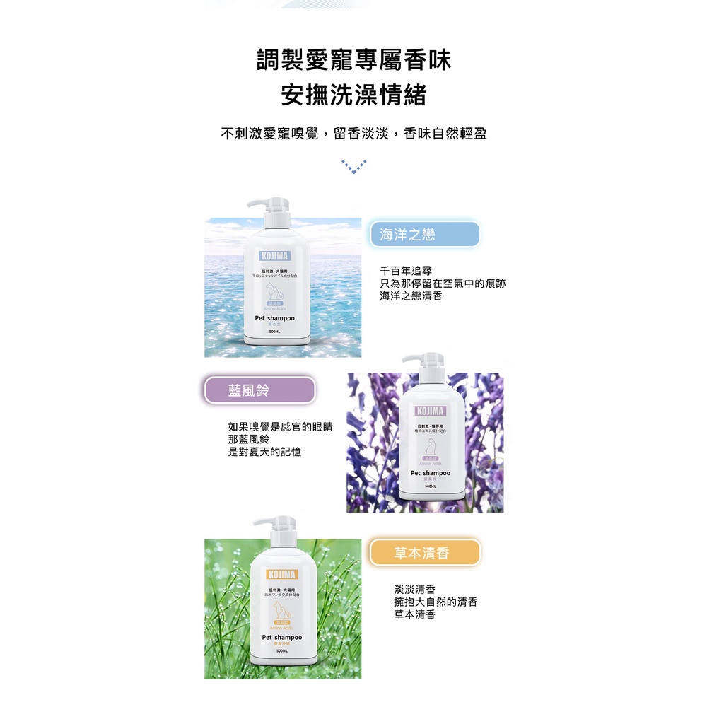 KOJIMA 低刺激胺基酸沐浴露 多款 貓用 沐浴露 毛髮護理 皮膚護理 寵物用 低敏溫和 植物配方 驅蟲除蟎海洋之戀 (通用)|藍風鈴香 (貓用)|草本清香 (通用)Hair Caremao & kou 官方旗艦店