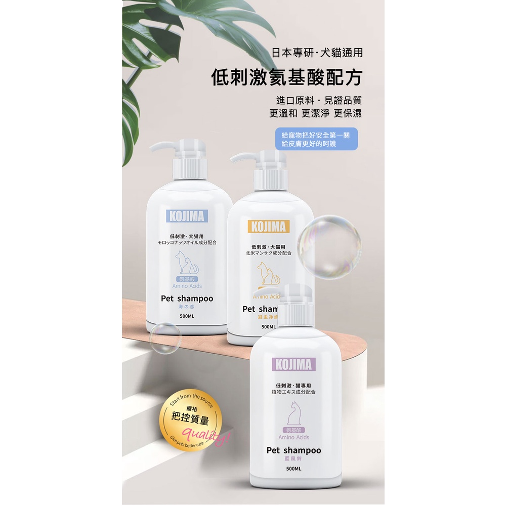 KOJIMA 低刺激胺基酸沐浴露 多款 貓用 沐浴露 毛髮護理 皮膚護理 寵物用 低敏溫和 植物配方 驅蟲除蟎