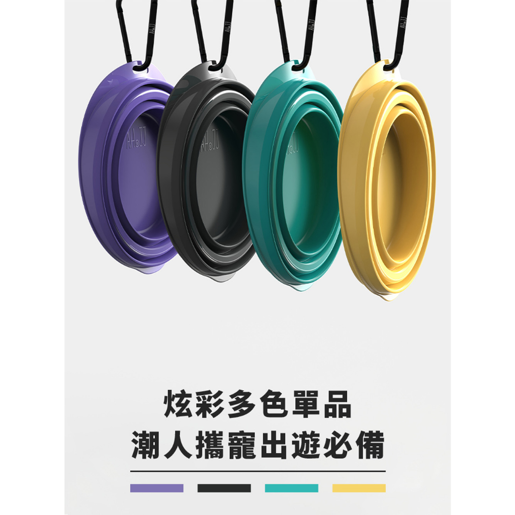 BoneFish 雙層寵物折疊碗 多色 含登山扣 貓用 犬用 貓狗通用 摺疊碗 矽膠碗 外出配件 寵物用品 旅行用品黃色 (含登山扣)|藍綠色 (含登山扣)|紫色 (含登山扣)Bowls & Feedersmao & kou 官方旗艦店