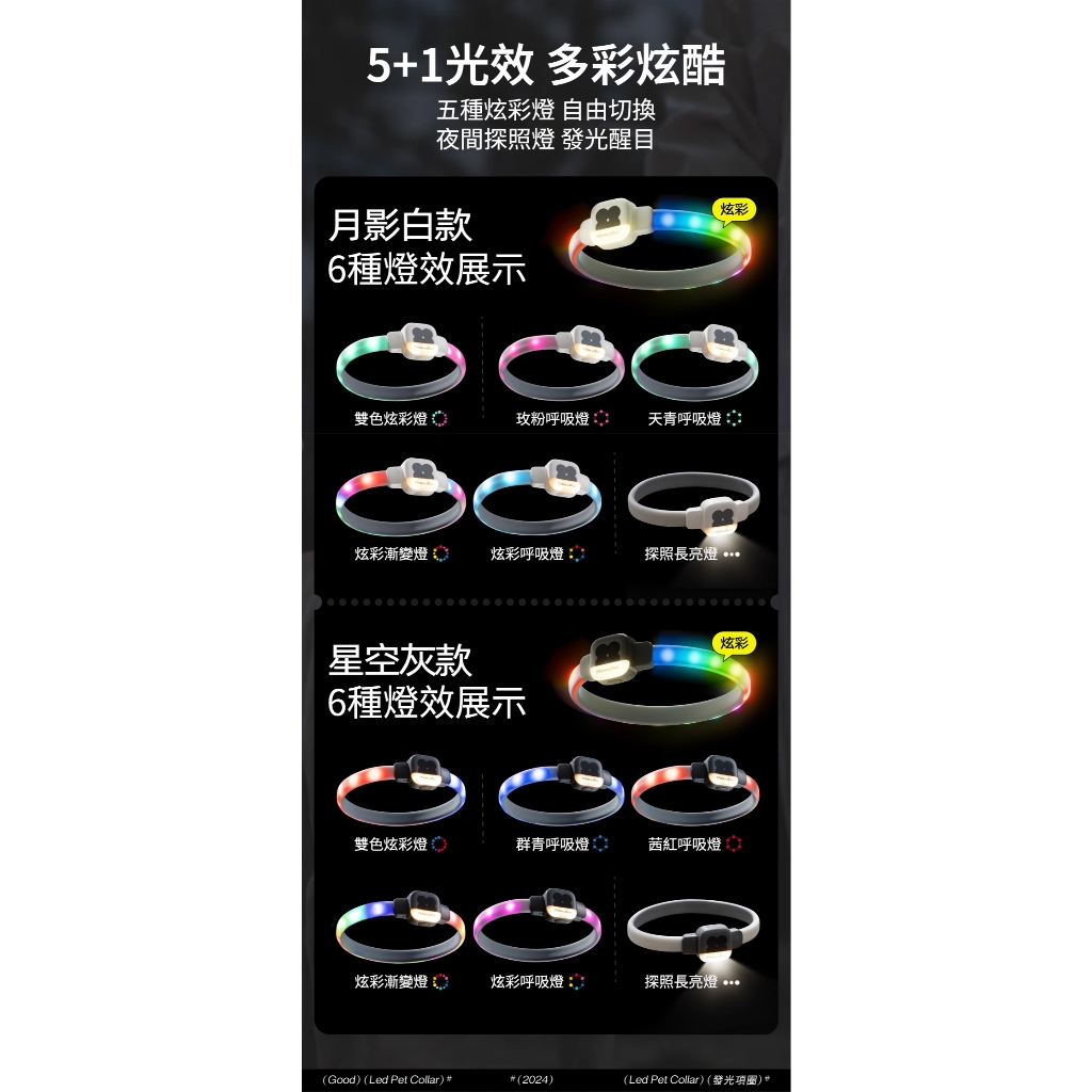 MewooFun 寵物炫彩發光項圈 貓用 犬用 貓狗通用 戶外 遛寵 寵物配件 戶外配件 六種光效 夜間發光白色,S|白色,M|白色,L|灰色,S|灰色,M|灰色,LLeashes, Collars, Harnesses & Muzzlesmao & kou 官方旗艦店
