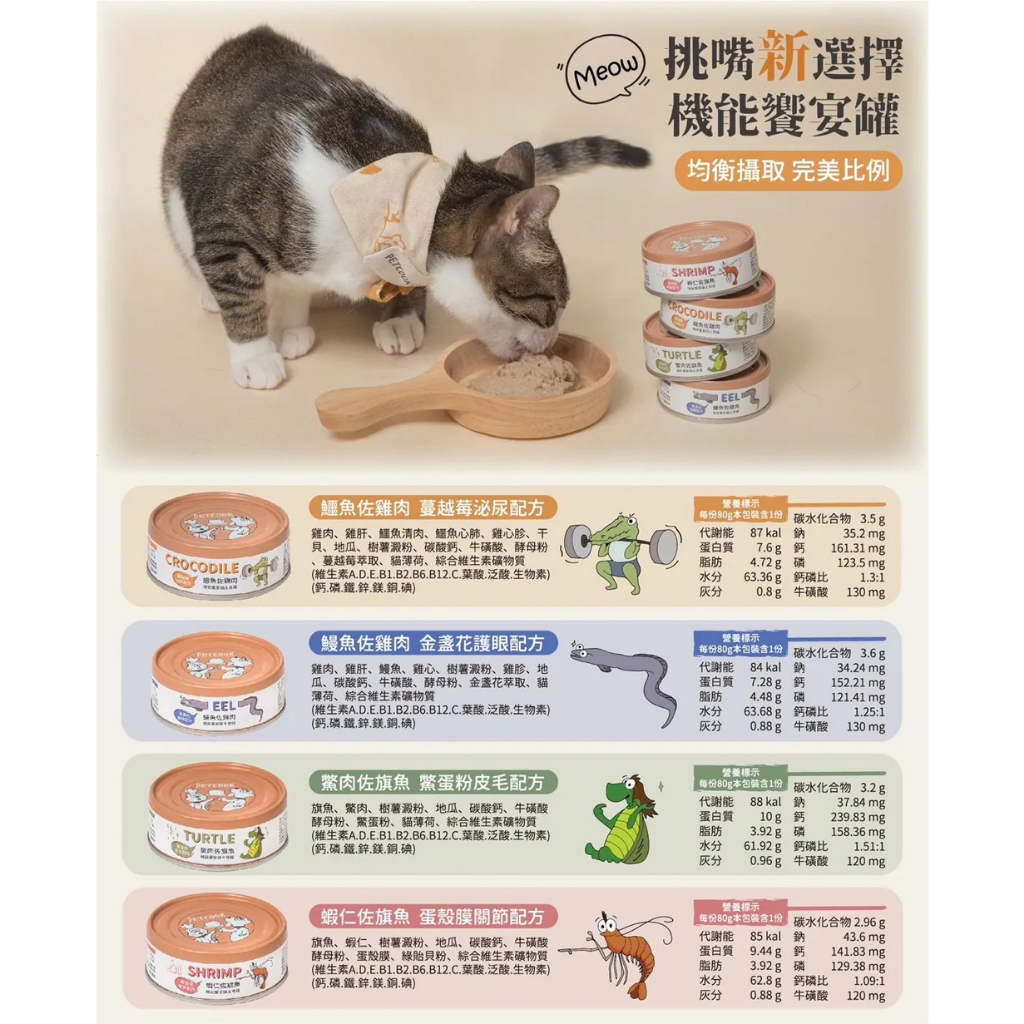 PETCOOK 派庫廚房 貓主食罐 機能饗宴貓咪主食罐 單罐 多種口味 貓用 主食罐 罐頭 濕食鱉肉 X 旗魚,80g/1入|鱷魚 X 雞肉,80g/1入|鰻魚 X 雞肉,80g/1入|蝦仁 X 旗魚,80g/1入Cat Foodmao & kou 官方旗艦店