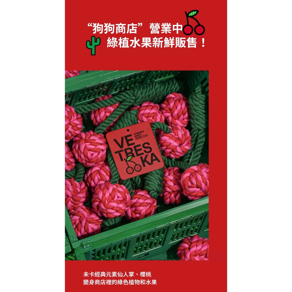 未卡 仙人掌 櫻桃 犬用繩結玩具 狗用 犬用 寵物玩具 狗玩具 拉扯玩具 磨牙玩具 Vetreska仙人掌|櫻桃Toysmao & kou 官方旗艦店