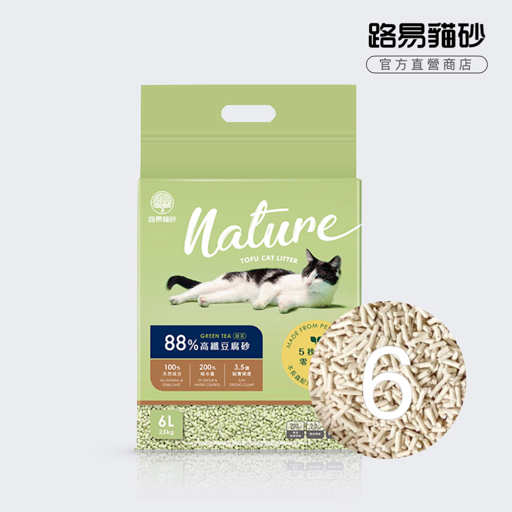 路易LOUIS 88%高纖豆腐砂6入(2.5kg/包) 首選天然豆腐砂「綠茶」(可沖馬桶)