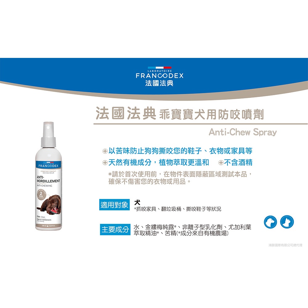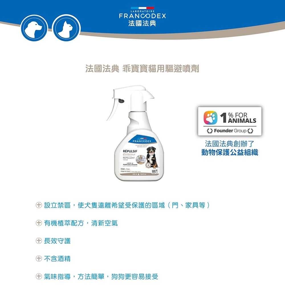 法國法典 貓用乖寶寶噴劑 犬用乖寶寶噴劑 驅避 寵物訓練 防亂標記 尿尿 方位寵物健康專家 Francodex貓用乖寶寶噴劑 – 驅避 200ml|貓用乖寶寶噴劑 – 貓薄荷 200ml|貓用乖寶寶噴劑 – 防抓 200ml|犬用乖寶寶噴劑 – 驅避 200ml|犬用乖寶寶噴劑 – 防咬 200ml|即期品│犬用防咬噴劑-25/12/31Anti Fleas & Ticksmao & kou 官方旗艦店