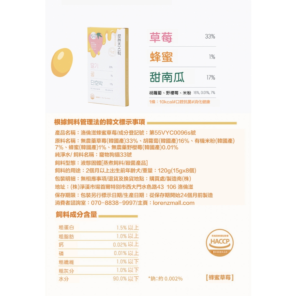 洛倫滋 寵物天然蔬果泥 多種口味 貓用 犬用 貓狗通用 蔬果泥 寵物零食 貓零食 狗零食蜂蜜 X 草莓 15g/8入|山羊奶 X 草莓 15g/8入|紅薯 X 鴨胸肉 15g/8入|紅薯 X 雞胸肉 15g/8入|紅薯 X 甜南瓜 15g/8入|紅薯 X 蘋果 15g/8入Cat Treatsmao & kou 官方旗艦店