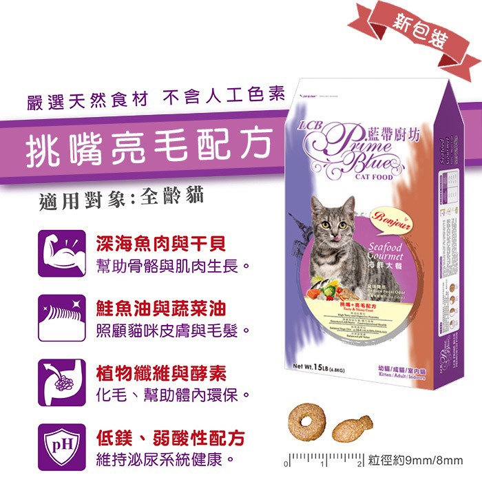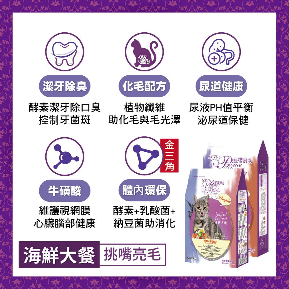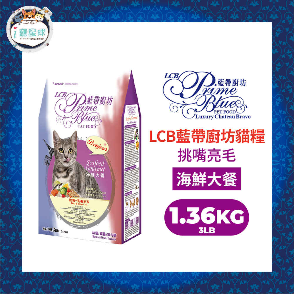 LCB藍帶廚坊經典貓糧 天然貓糧 貓飼料 – 海鮮大餐 挑嘴亮毛 3LB(1.36kg) – 全齡貓 室內海鮮大餐-挑嘴亮毛,3LB(1.36kg)-超取/蝦店限3包|海陸雙拼-化毛潔牙,3LB(1.36kg)-超取/蝦店限3包Cat Foodi寵星球