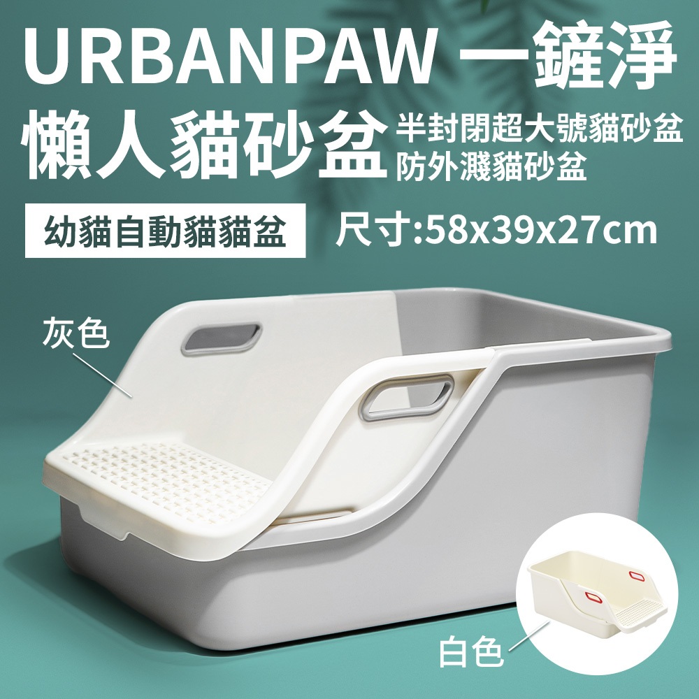 UrbanPaw 一鏟淨懶人貓砂盆|半封閉超大號貓砂盆 懶人貓廁所 防外濺 (幼貓自動貓砂盆)白色|灰色Cat Litter & BoxesiCat 寵喵樂