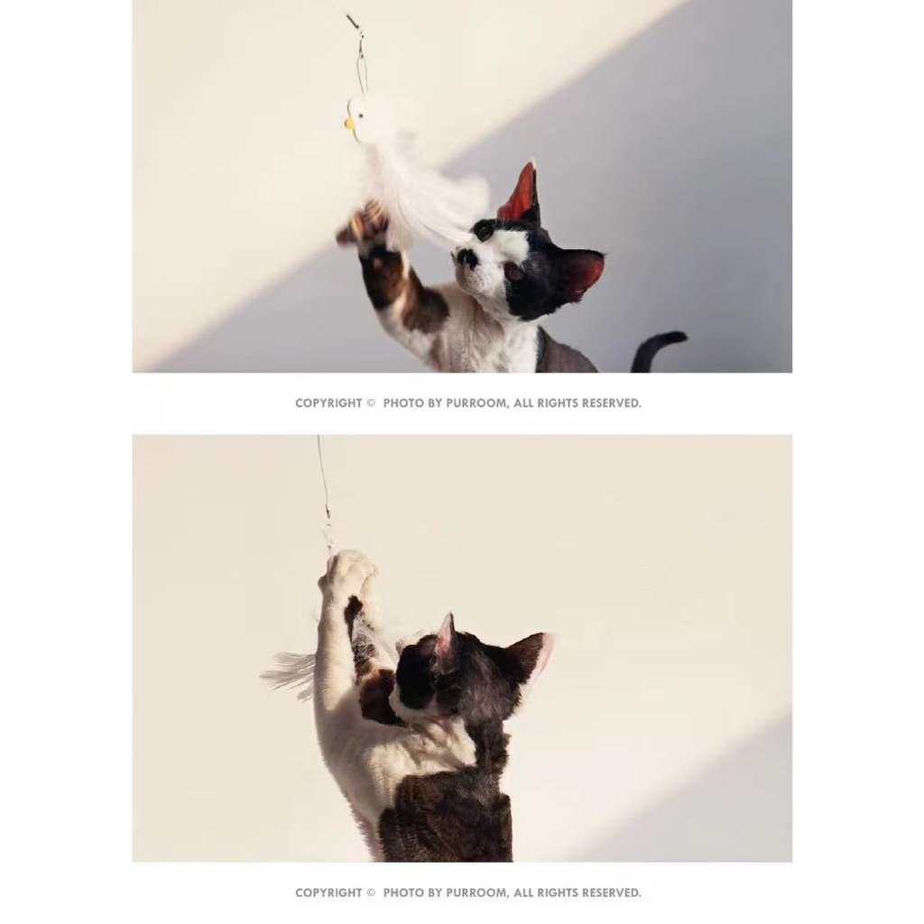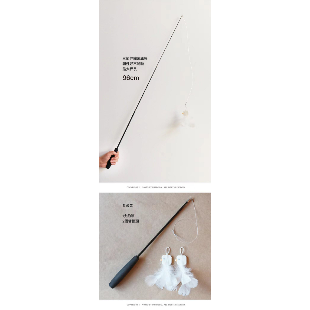 PURROOM 伸縮款逗貓棒 小雞羽毛 逗貓棒 伸縮款 釣魚線 釣魚款 釣魚竿逗貓棒 超長 長版逗貓棒小雞羽毛Toysmao & kou 官方旗艦店