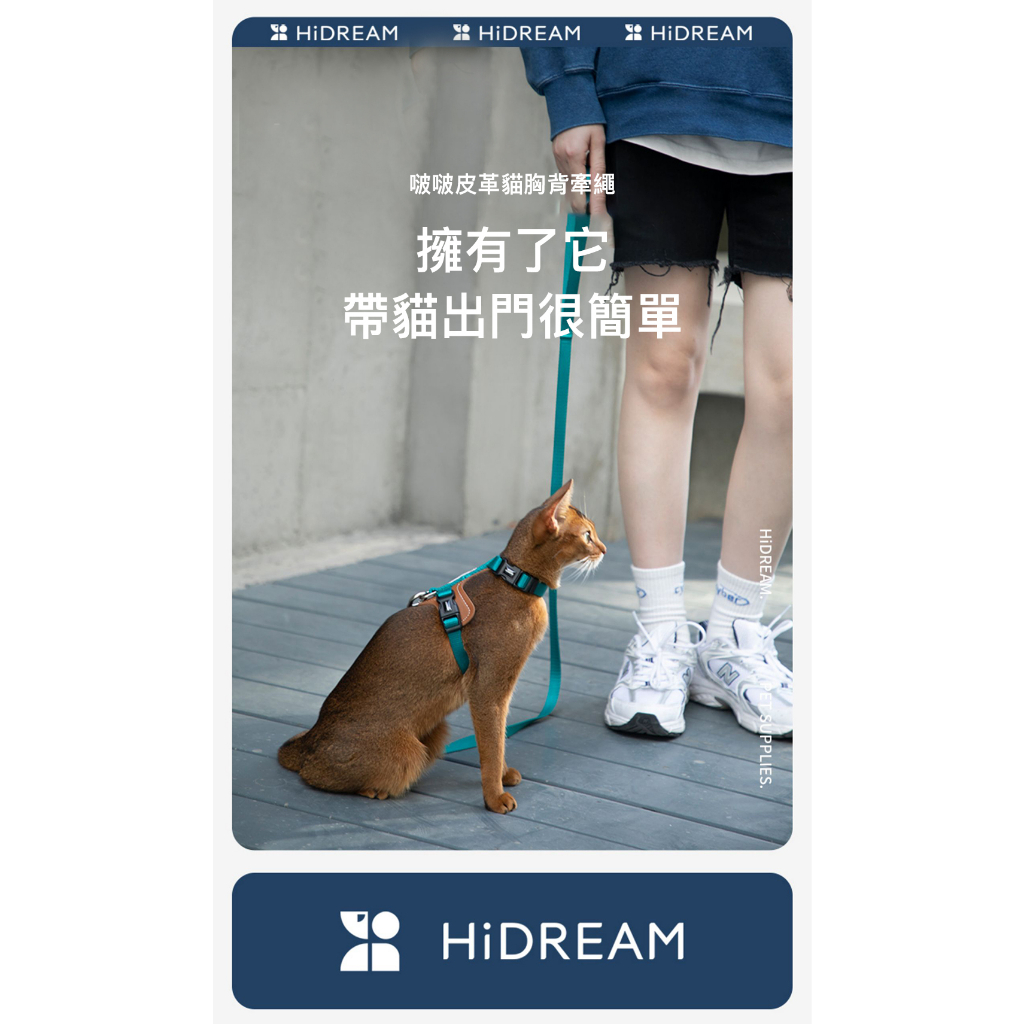 HiDREAM 啵啵皮革貓胸背牽引繩套裝 貓咪牽繩 貓用 胸背帶 胸背帶牽繩組 貓用牽繩 胸背帶牽繩