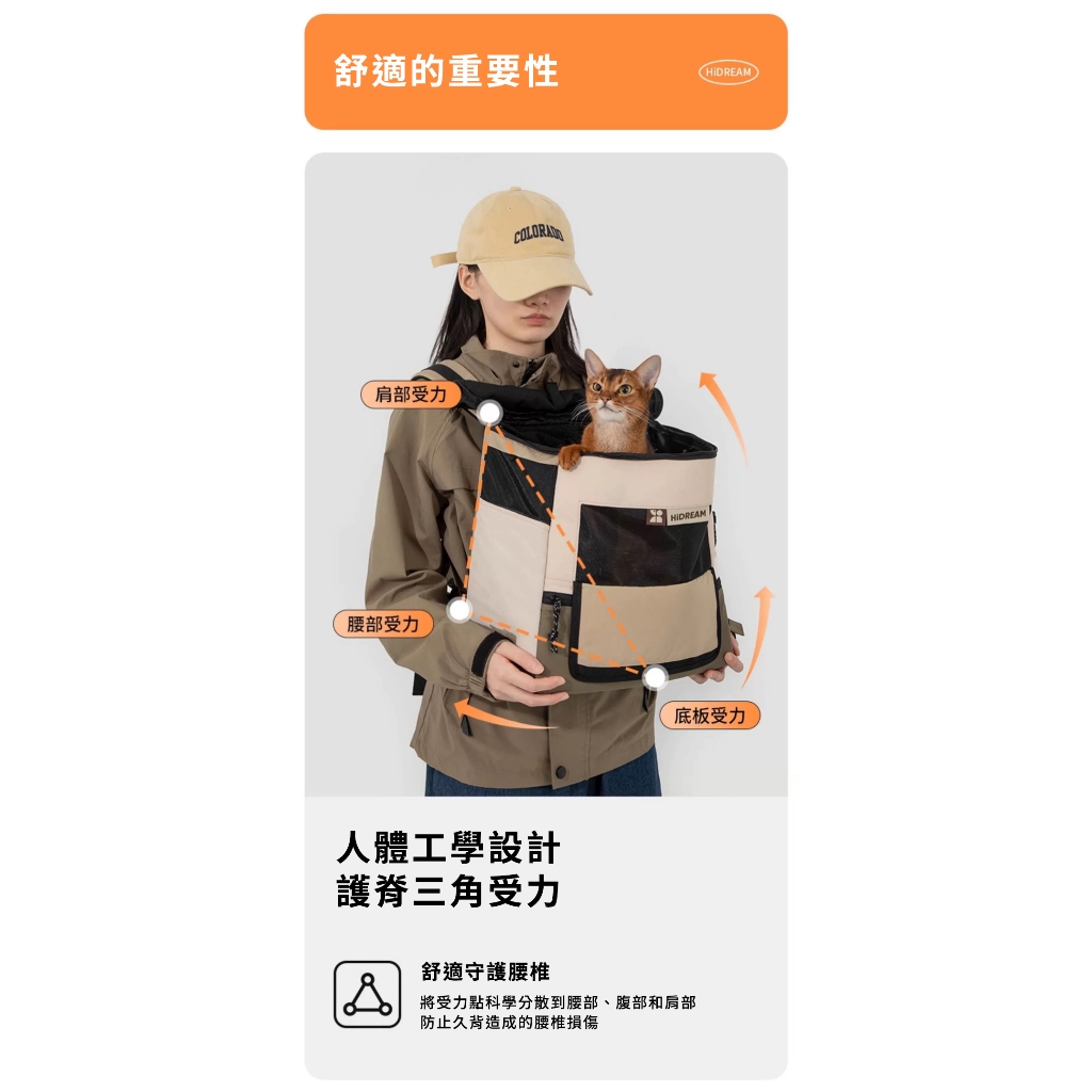 HiDREAM 前後可背托特寵物雙肩包 牛乳棕 貓用 犬用 貓狗通用 寵物外出包 雙肩包 後背包牛乳棕Travel Essentialsmao & kou 官方旗艦店