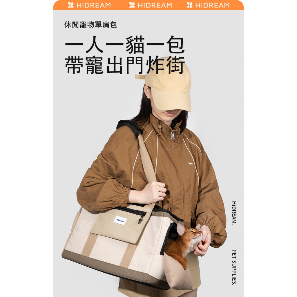 HiDREAM 休閒單肩包 貓用 犬用 外出包 寵物配件 極簡探險家系列外出包牛乳棕Travel Essentialsmao & kou 官方旗艦店