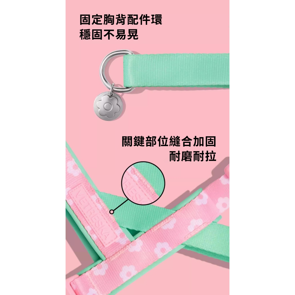 未卡 花花牽引繩套裝 胸背 牽繩 粉綠 貓用 犬用 貓狗通用 胸背帶 外出配件 寵物外出 牽繩胸背XS|S|MLeashes, Collars, Harnesses & Muzzlesmao & kou 官方旗艦店