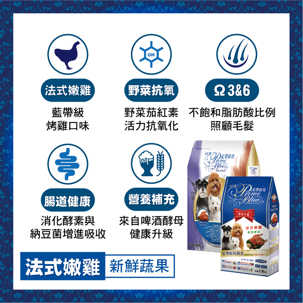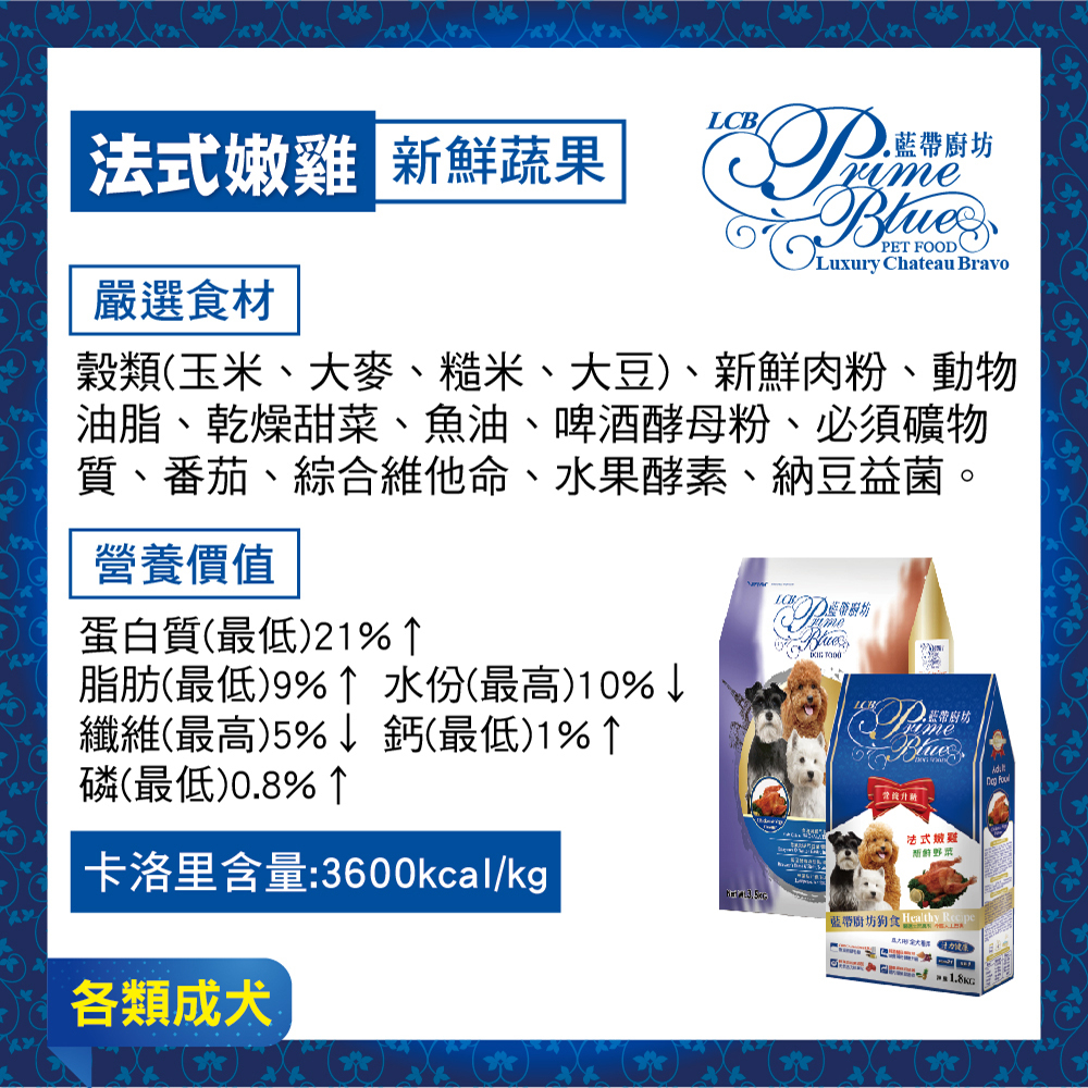 LCB藍帶廚坊經典狗糧 天然犬糧 狗飼料 – 雞肉米食1.8kg 全犬 成犬用雞肉米食,1.8kg|重量提醒,1.8kgDog Foodi寵星球