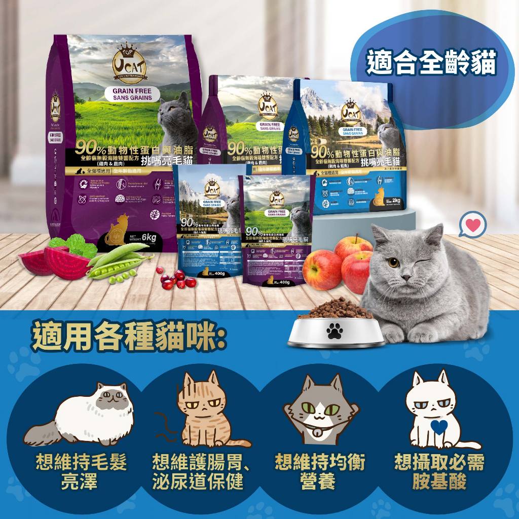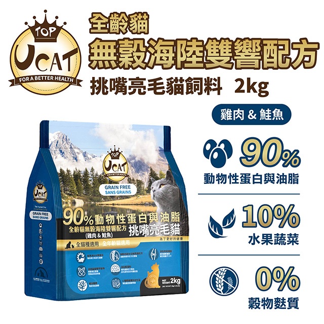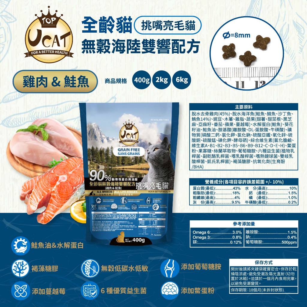【UCAT天然無穀全齡貓】雞肉&鮭魚/挑嘴亮毛配方(2kg) 【⚡️台灣現貨⚡️】高優質動物性蛋白 貓飼料超取限4公斤Cat FoodiCat 寵喵樂