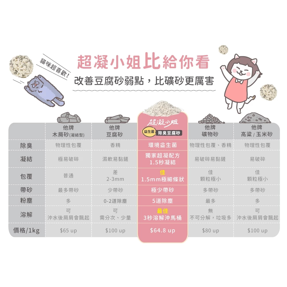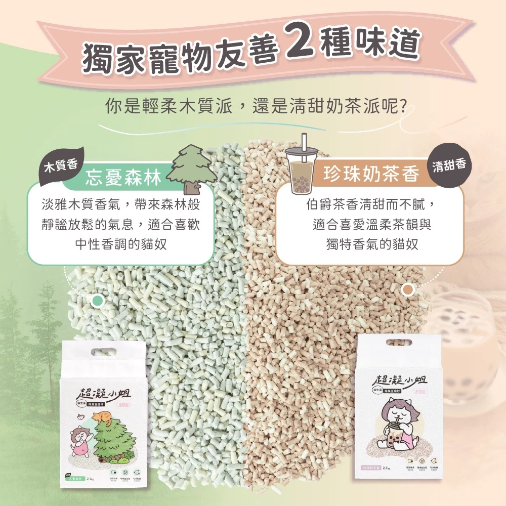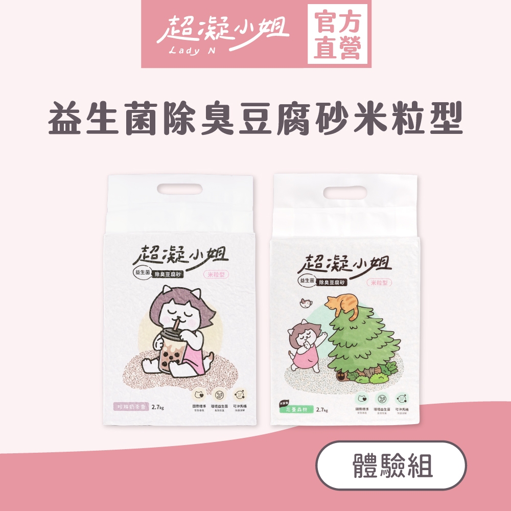 超凝小姐|【2包體驗組】益生菌除臭豆腐砂米粒型(7Lx2包)貓砂 可沖馬桶 快速凝結 低粉塵忘憂森林香 兩包入|珍珠奶茶香 兩包入Cat Litter & BoxesLady N 超凝小姐品牌館
