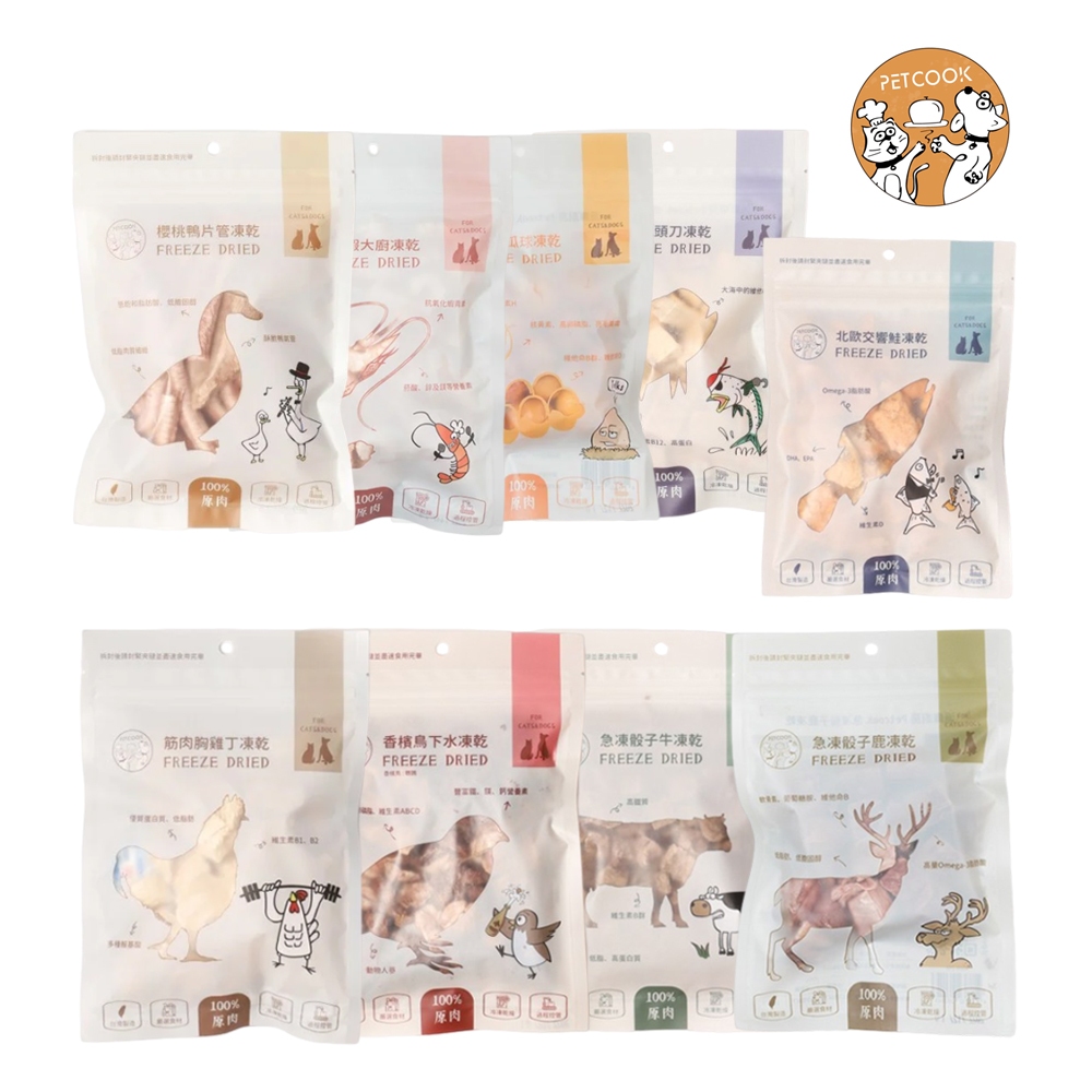 派庫廚房 鮮肉凍乾零食 多種口味 貓咪 獎勵零食 冷凍乾燥 台灣製造 原肉製造 訓練用 零食北歐交響鮭 50g|虎克鬼頭刀 50g|筋肉胸雞丁 50g|急凍骰子鹿 40g|海灣鮮干貝 30g|櫻桃鴨柳片 40g|急凍骰子牛 50g|香檳鳥下水 50g|酥卵地瓜球 100g|櫻桃鴉片管 50g|極鮮蝦大廚 30g|酥酥丁香魚 50g|酥胡啦雞佛 30gCat Treatsmao & kou 官方旗艦店