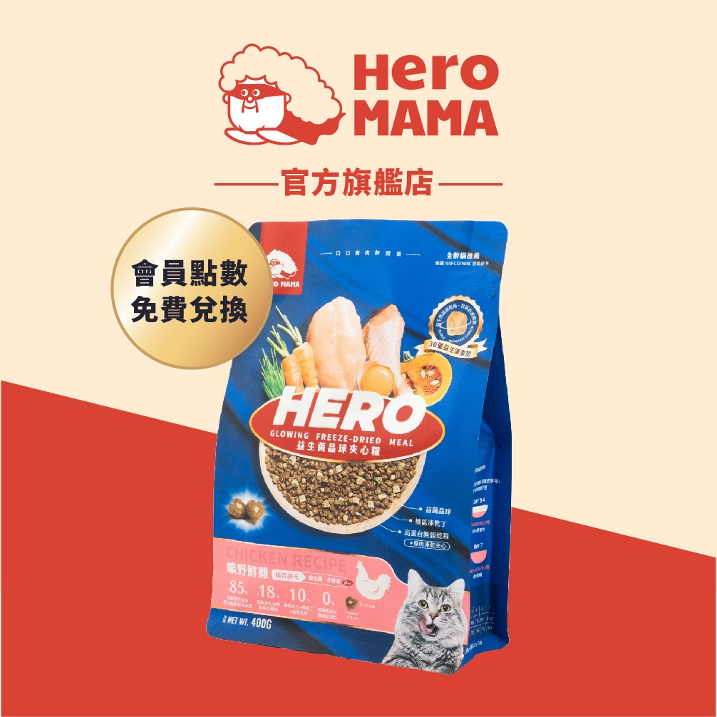 【HeroMama】貓用益生菌凍乾晶球糧 會員點數兌換商品 口味隨機 請勿下單曠野鮮雞 400gCat FoodHeroMama品牌旗艦店