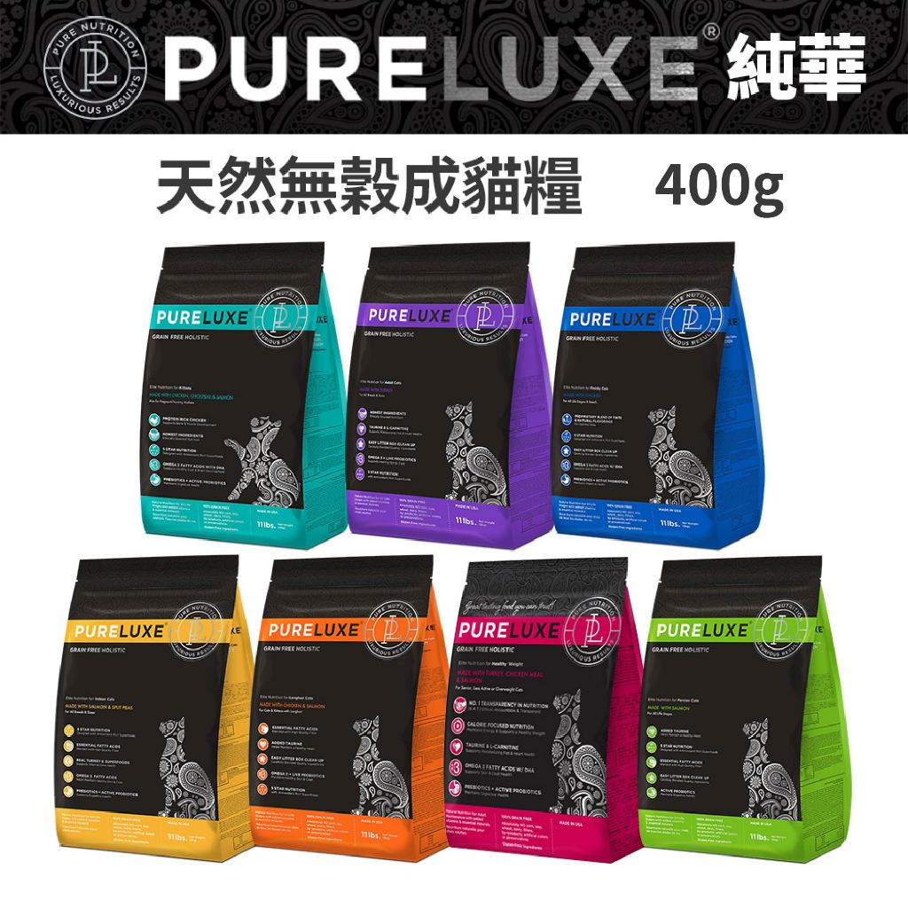 PureLUXE 美國純華天然無穀貓糧 400g 成貓幼貓/室內貓/長毛貓/高齡貓飼料 貓主食 貓乾糧 追朔原料鮮雞幼貓|火雞成貓|高齡貓|長毛貓|鮮雞成貓Cat FoodiCat 寵喵樂